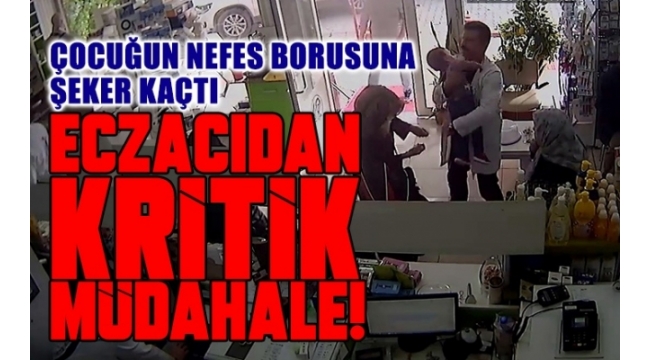 eczacı İlhan Durgut, çocuğu hemen kucağına aldı ve sırt bölgesine vurarak solunumunu açmaya çalıştı. Bu sırada müdahaleye cevap veren bebeğin nefes borusundaki şeker çıkarıldı. Yaşan panik dolu dakikalar ise eczanenin güvenlik kamerasınca saniye saniye yansıdı.