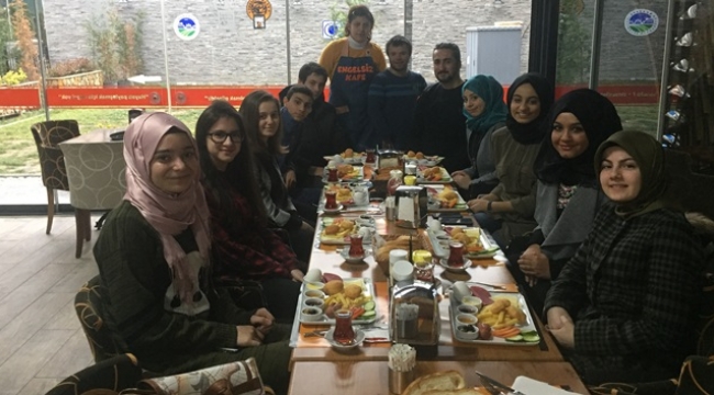 Toplumsal Hizmet Kulübü Başkanı Sude Kasımoğlu, Engelli bireylerin, gençlerin istihdamı düşüncesi ve ihtiyacıyla ortaya çıkan Engelsiz Kafe, özel gereksinimli gençlerimizin sunumları ve özel menüleriyle Sakarya'nın ilk ve tek engelsiz kafesi olma özelliğini taşıyor. Bizler de Toplumsal Hizmet Kulübü olarak sosyal sorumluluk projelerine öncelik veriyoruz. Bir dönem boyunca yapmış olduğumuz etkinliklerin değerlendirmesini yapmak ve gelecek dönemi planlamak için bir toplantı kararı almıştık. Bu karar neticesinde yine bir sosyal sorumluk örneği olması açısından Engelsiz Kafeyi tercih ettik. Şef garsonumuz son derece sempatik hareketleriyle Ekin reis sağolsun bizlerle çok ilgilendi çok güzel bir hizmet verdi. Bu yüzden burda görevli herkese çok teşekkür ediyoruz dedi.Toplumsal Hizmet Kulübü Başkan Vekili Ezgi Elik; Bu dönem çoğun bir çalışma süreci geçirdik. Okulumzuda Aşure Günü etkinliği düzenleyerek tüm öğrenci arkadaşlarımıza ve öğretmenlerimize aşure ikramında bulunduk. Her Sınıfın Bir Yetim Kardeşi Var Projesi kapsamında Moritanya, Kenya ve Suriye olmak üzere 3 farklı ülkeden yetim kardeşler edindik. Kulüp içi sosyal kültürel etkinlikler olarak, Kudüs, Suriye ve Bosna sunumları gerçekleştirdik. Ayrıca Yedirenk Ulslararası Öğrenci Derneği ile birlikte Endonezya, Batı Trakya ve Somali’den gelen misafir öğrencilerle 3 farklı ülke tanıtımı programı düzenledik.Karaman’da bulunan Geçici Eğitim Merkezindeki Anaokulunda çocuklara hediyeler alarak ziyaret ettik onlarla oyunlar oynadık. Youtube’ta yüz milyondan fazla izlenme oranı olan Emir Şamur ile bir söyleşi ve mini konser organize ettik. Halep için bir tır insani yardım kampanyası geröekleştirdik. Arkadaşlarımızdan aldığımız bağışlar ile temin ettiğimiz 25 ton patates yardımı tırını okulumuzdan uğurladık. Aynı zamanda bu kampanya kapsamında bir de kermes düzenledik. Çok yoğun bir dönemin sonunda böyle ferah nezih bir ortam olan Engelsiz Kafe’de değerlendirme toplantısı yaparak sosyal sorumluluk etkinliği daha gerçekleştirmiş olduk. Çalışmalarımıza ve toplantımıza katılan tüm arkadaşlarımıza teşekkür ediyoruz. İkinci dönemde aynı sorumluluk anlayışı ile çalışmalarımıza devam edeceğiz dedi.
