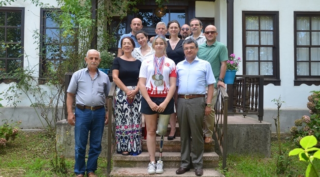 Sapanca Kaymakamı Ali Ada, Polonya'da Tekerlekli Sandalye Eskrim 17 ve 23 Yaş Altı Dünya Şampiyonası’nda ülkemize 2 gümüş ve bir bronz madalya kazandıran Elke Lale van Achterberg’i ziyaret etti.