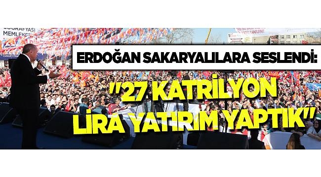 DEVLETİMİZİ ZAFİYETE UĞRATAMAYIZSuriye meselesi sınırlarımızda bir terör koridoru oluşturma aşamasındayken istikrarımızı bozamayız. Devletimizi zafiyete uğratamayız. Yeni Zelanda'da ki hadiseyi gördünüz. Elin oğlu 2019 yılında silahına kazımış, bununla yetinmeyip 50 kardeşimizi katletmiş. Amaç bu aziz vatandan ölü yada diri bizi kazıyıp atmak. Amaç özgürce nefes alacağımız bir alan bırakmamaktır. Bizim milletimizin kalbiyle dili aynı istikamettedir. 27 KATRİLYON LİRA YATIRIM YAPTIK"Son 17 yılda Sakarya'ya 27 katrilyon lira yatırım yaptık. 1335 yataklı 47 adet sağlık tesisini şehrimize kazandırdık. 133 kilometreden devraldığımız 268 kilometre yol uzunluğunu ilave ile 401 kilometreye çıkardık. Sakarya’ya ikinci devlet üniversitesini (subü) kurduk. Stadyumu kurduk. Millet bahçesinin çalışmaları başladı. Ayçiçeği bisiklet vadisinde dünya şampiyonasını ağırladık. 200 yataklı kadın Doğum hastanesi ile birlikte 6 hastane yağımı sürüyor. 100 yataklı şehir hastanesi yapılıyor. İstinaf mahkemesini harekete geçirdik. Karasu tüneli Kaynarca Ankara bölünmüş yolun ğrojesi devam ediyor. Hızlı tren farbrikasını Sakarya'ya kurmak bize nasip oldu. Karasu limanını tamamlayıp hizmete açtık. Ada ekspresin seferleri yüksek hızlı tren çalışmaları yüzünden durmuştu. Talimatı verdik ve ada tren Cumartesi gara geldi. Sakaryamıza hayırlı olsun. 3 baraj ve 1 gölet daha inşaa edeceğiz projeleri sürüyor. İmar barışıyla 179 bin Sakaryalı kardeşimizin sorunu çözdük. Ankara İstanbul yüksek hızlı tren hattı aynı zaman Sakarya'nın projesidir. Karasu Limanı'nı işletmeye açtık. Bu liman Karadeniz'den dünyaya açılan kapı olmaya aday. Ballıkaya Barajı'nı yakında hizmete alıyoruz. Son 17 yılda 53 taşkın koruma tesisi inşa ettik. Sakarya'da çiftçilerimize 1,4 milyar lira destek verdik." Miting sonunda Erdoğan vatandaşa kuru çay ikram etti.