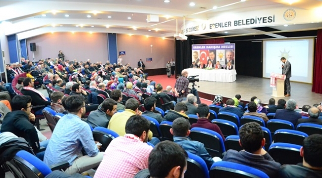 Erenler Kültür Merkezinde düzenlenen toplantıya; AK Parti sakarya Milletvekili Recep Uncuoğlu, 25. Dönem Sakarya Milletvekili Ali İnci, AK Parti erenler İlçe Başkanı Resul Yılmaz, Erenler Belediye Başkanı Cavit Öztürk, Başkan Yardımcıları Muhammet Kıratlı, Ali Akdeniz, Erenler Belediyesi Meclis Üyeleri, Mahalle Muhtarları, AK Parti Erenler İlçe Kadın Kolları Başkanı Belgin Demirağ ve yönetim kurulu, Gençlik Kolları ve yönetim kurulu, Mahalle Başkanları ile çok sayıda partili katıldı.Açılış konuşmasını yapan İlçe Başkanı Resul Yılmaz referandum sürecinin başladığını belirterek bu kararın önemine değindi. Erenlerin seçimlerdeki karnesini çıkaran Yılmaz, il genelinde hedefin %75 olduğunu belirterek Erenlerde ise hedefin %85 olduğunu yineledi.Başkan Öztürk Belediyenin Hizmetlerini anlattıErenler Belediye Başkanı Cavit Öztürk konuşmalarında Kentsel Dönüşümde ilk etabın tamamlandığını yineleyerek 280 konutun sahiplerine teslim edildiğini ve yakın zamanda Bakanlık adına kalan konutların da satışının yapılacağını belirtti. Dubleks ve Tripleks şeklinde yapılacak olan İkinci etabın ihalesinin yapıldığını inşaat çalışmalarının hızlı bir şekilde sürdüğünü ve 12 ay sonunda çalışmanın biteceğini söyledi. İlçe genelinde sürdürülen diğer çalışmalara da değinen Başkan Öztürk, Kentsel Dönüşüm Görüşme Ofisi Binasının bittiğini, Binanın büyük bölümünün il sağlık müdürlüğü ile yapılan protokol neticesinde oraya kiralandığını toplum sağlığı ve halk sağlığı merkezlerinin o binaya geleceğini belirtti. Belediyeye Tam donanımlı bir ambulans aldıklarını, bu ambulansın il sağlık müdürlüğü ile yapılan protokol ile Şoför, hemşire ve doktorun 7/24 aktif olacak şekilde onlara devredildiğini açıkladı. Başkan Öztürk, Yavuz Selim caddesinde şu an inşaatının devam ettiği çok güzel bir vizyon parkın daha çalışmalarına başlandığını ve Ramazan öncesi faaliyete geçeceğini müjdeledi. Yaşam Merkezi Binasının ince işçiliklerinin ihale sürecinin iki hafta içerisinde başlanacağını, çöp konteynerlerinin yer altına alınması ile ilgili çalışmaların başladığını, kırsaldan merkeze İhtiyaç olan her noktada altyapısı tamamlanmış yerlerde asfalt çalışması yapılacağını sözlerine ekledi. Rahat ulaşım için Erenler olmalı25. Dönem Milletvekili Ali İnci ise yapmış olduğu konuşmada; “Erenler Belediye Başkanımızı 3 dönemini tamamlamış bir Belediye Başkanı olarak değil de, sanki yeni göreve başlamış bir şevk ve bir zevk ile hizmetlerini sürdürdüğünü gördüm. Ondan dolayı Başkanımızı tebrik ediyorum. Üniversitemizin isminin, patentinin de bizde olduğu ‘Doğu Marmara Üniversitesi’ olmasını talep ediyoruz. Üniversitenin, Hastanenin en rahat ulaşım sağlanabilecek Erenlerde olmasını isteyenlerdenim” dedi.Uncuoğlu, Erenler dediErenler İlçesi’nin hem 1000 yataklı hastane için hem de Üniversite için uygun arazilere ve önemli bir cazibeye sahip olduğunu ifade ederek sözlerine başlayan AK Parti Sakarya Milletvekili Recep Uncuoğlu daha sonra referandum süreci ile ilgili bilgilendirmelerde bulundu. Uncuoğlu konuşmasında; “Tarihi bir süreç içerisindeyiz. 7 Haziranda hükümet kurulamayan bir tablo yaşadık. %40 ile AK Parti tek başına iktidar olamadı. Eski Türkiye’nin ne kadar yakın olduğunu 7 Haziran 2015 gören milletimiz 4 ay gibi bir sürede AK Partiyi %49,5 oyla getirdi ve tek başına iktidar yaptı.Koalisyonlarla inim inim inleyen, bir çivi dahi çakılmayan, atılan temellerin çürütüldüğü, hastanelerde kuyrukların olduğu, adliyelerin çalışmadığı, her tür mafyanın cirit attığı bir memlekette yaşadık. Biz koalisyonlarla yönetilemiyoruz. Biz iki başlılığa tahammül eden bir toplum değiliz. Bugün 15 Temmuzdan sonra Türkiye’nin maruz kaldığı bu tehditlerle bir daha 7 Haziranı yaşamamak gibi bir zorunluluğu olduğunu hepimiz gördük. Bu millet o kalkışmayı tarihte eşi benzeri olmayacak şekilde çıplak elleriyle engelledi. Dolayısı ile bu işin sadece AK Parti meselesi olmadığını, memleket meselesi olduğunu, Tayyip Erdoğan için değil torunlarımız için olduğunu, milletimizin önüne tarihi bir fırsat geçtiğini hep beraber kapı kapı gezerek anlatacağız” dedi.