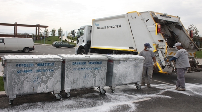 Erenler İlçesi genelinde çöp konteynerlerinin köpüklü su ile yıkanması uygulamasını sürdüren ekipler temizlik araçlarında bulunan dezenfekte tankı ile ilçe genelinde sayısı 5 bin 500’ü bulan konteynerleri baştan aşağı temizliyor.Çöp Konteynerlerinden çevreye yayılan kötü kokulara savaş açan ekipler çöp konteynerlerini dezenfekte çalışmaları ile vatandaşın takdirini topluyor.