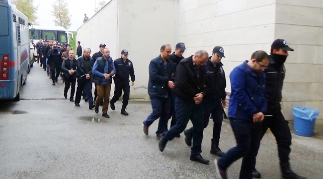 15 Temmuz gecesi Fethullahçı Terör Örgütü mensuplarınca gerçekleştirilmek istenen darbe teşebbüsü sonrası sakarya Cumhuriyet Başsavcılığı tarafından başlatılan operasyonlar tüm hızıyla sürüyor. Geçtiğimiz günlerde Sakarya merkezli 19 ilde FETÖ/PDY’nin emniyet yapılanmasına yönelik yürütülen soruşturma kapsamında gözaltına alınan, aralarında emekli emniyet müdürü, komiser yardımcısının da bulunduğu 18 emniyet mensubu ile Zaman Gazetesi Genel Yayın Müdürü Ekrem Dumanlı ve eski Samanyolu Yayın Grubu Başkanı Hidayet Karaca'nın gözaltına alınmasını protesto etmek amacıyla 2014'te düzenlenen kanunsuz eyleme katıldıkları için gözaltına alınıp adliyeye getirilen 13 kişinin savcılık sorguları tamamlandı.