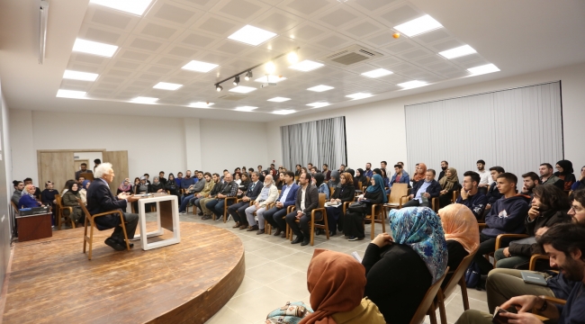 Ders öncesi Prof. Dr. Mahmut Kaya ile bir araya gelerek sohbet eden serdivan Belediye Başkanı Yusuf Alemdar, Serdivan Fikir ve Sanat Akademisi’nin faaliyetleri hakkında bilgi verdi.Dünya Çapında İsimleri AğırladıSerdivan Fikir ve Sanat Akademisi’nin bilimsel, felsefî ve sanatsal çalışmaları desteklemek amacıyla 2012 yılında hizmet vermeye başladığını belirten Başkan Alemdar, Akademi’nin geride kalan 6 sene içerisinde dünya çapında tanınan isimlerle birlikte ulusal ve uluslararası konferanslara ev sahipliği yaptığını ifade etti.Akademi’nin 7/24 hizmet veren kütüphanesi ile araştırmacılara felsefe, sanat ve sosyal bilimler alanında geniş bir literatür sunduğunu da hatırlatan Alemdar, aylık yayımlanan şehir kültürü gazetesi Serdivan Ajans’ın da bu çatı altında hayat bulduğunu belirtti.Şiirlerini PaylaştıKendi kalemiyle ele aldığı şiirleri Başkan Alemdar ve misafirlerle paylaşan Prof. Dr. Mahmut Kaya bir düşünce ya da bir maddenin dünyanın her yerinde standart bir kalıpla üretildiğini ve her şeyin bu standartlar dahilinde şekillendiğini ifade ederek Serdivan Fikir ve Sanat Akademisi’nin ortaya koyduğu çalışmalarla yeniliklere ışık tuttuğunu belirtti.Sohbet sonrası Akademi meydanındaki öğrencilerle “Medreseden Üniversiteye Bilginin Serüveni” konu başlığıyla söyleşi yapan Prof. Dr. Mahmut Kaya’yı Başkan Alemdar da misafir olarak takip etti.Söyleşiyi, sakarya Üniversitesi’nden akademisyenlerin yanı sıra İlahiyat Fakültesi ve Felsefe Bölümü öğrencileri ve çok sayıda vatandaş takip etti.Dil Düşüncenin Temel YapısıdırSöyleşisinde dilin düşünce yapısının temel malzemesi olduğunu belirten Kaya, “İlmimizi, sanatımızı, medeniyetimizi kısaca her şeyimizi dilimize borçluyuz. Dilimizin ürettiği kelime ve kavramlar zihnimizin, duygularımızın, zevkimizin ürünü ise o medeniyet, o kültür bizimdir.Başkalarının ürettiği, anlam yüklediği kelimelerle ancak mukallit oluruz. Taklit ise hiçbir zaman orijinalin yerini tutmaz.” dedi.