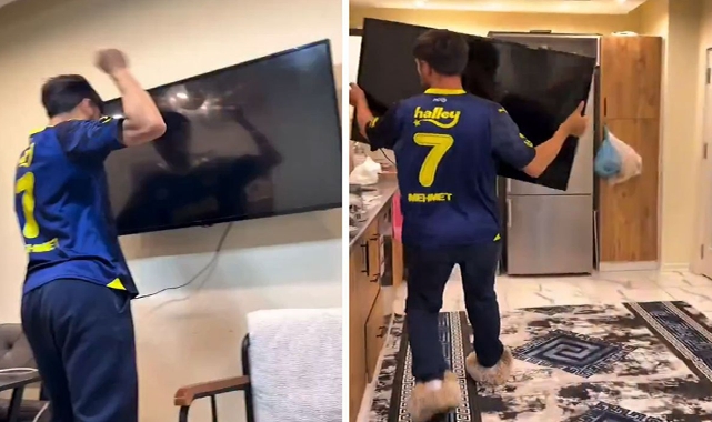 Galatasaray’ın üçüncü golünü atmasının ardından büyük hayal kırıklığı yaşayan Fenerbahçeli taraftar, öfkesine hakim olamadı. Maçı izlediği sırada sinirlenen taraftarın, televizyonu aşağı attığı görüldü.GÖRÜNTÜLER SOSYAL MEDYADA YAYILDI
