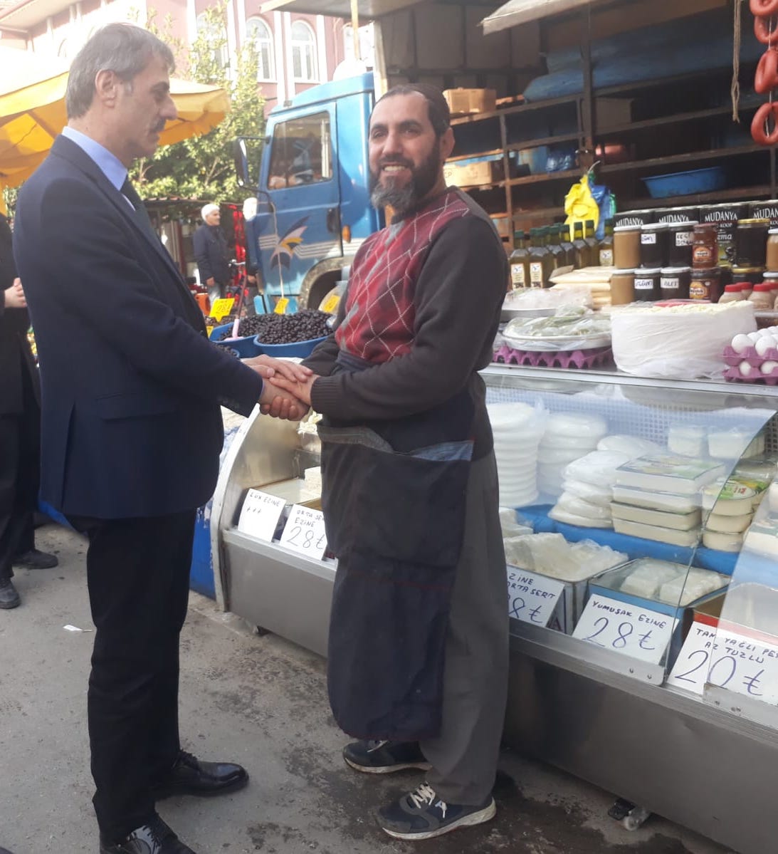 Serdivan Belediye Başkanı Yusuf Alemdar, pazar alışverişine çıkan vatandaşlarla sohbet ederken çocuklara da oyuncak hediye etti.