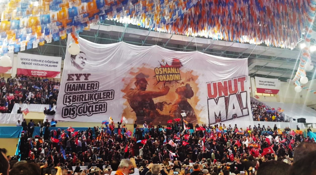Kongreden günler önce bölgesel olarak bir araya gelerek provalar gerçekleştiren Gençlik Kolları Teşkilatları salonda adeta coşku seli oldu. Sloganlarla tüm salona coşku saçan, tüm salonu harekete geçiren Gençlik Teşkilatları Erdoğan tarafından sık sık “gençler çok coşkulu, maşallah barekallah” şeklinde övgüler aldı. Bordo Bere ve Osmanlı TokadıÖzel Kuvvetler tarafından kullanılan Bordo Bereler ile salonda yerini alan ak gençlik “Reis bizi Münbiç’e götür, İşte Ordu İşte Komutan, Şehitler Ölmez Vatan Bölünmez” sloganları ile terör örgütlerine karşı kahramanca mücadele eden askerlerimizi ve polislerimizi andı. Salon ve alan girişinde arama noktalarında sık sık “güvenlik güçlerimize sadece dua ederek değil, işlerini kolaylaştırarak, yardımcı olarak da yanlarında olduğumuzu hissettireceğiz” şeklinde birbirlerini uyaran gençlere görevli güvenlik güçleri teşekkür etti. Cumhurbaşkanı Recep Tayyip Erdoğan’ın ABD’ye vermiş olduğu cevaptan esinlenerek hazırlanan 25 metre boyutlarında “EY HAİNLER, İŞBİRLİKÇİLER, DIŞ GÜÇLER OSMANLI TOKADINI UNUTMA!” pankartı ise konuşma arasında gençler tarafından iple çekilerek tribünün üzerine açıldı. Pankartı gören Erdoğan “Bunu gençler mi yaptı? Gençler Osmanlı Tokadını iyi atıyor ancak zamanında bizle beraber olan bazılarının Osmanlı Tokadını unutmuş olması da manidar. Osmanlı tokadını sadece Afrin'deki 3 bin 300 teröristin yemediğini, onların dışında da bazılarının yediğini ifade eden Erdoğan, "Tabi bildiklerimiz çok ama bu bildiklerimizi kağıda dökeceğimiz zamanlar da gelecek. Sabreden kimse evelallah zaferi yakalar, oraya da ulaşır." dedi. Gençler, şimdi sizin bu coşkunuzu görünce, merhum Abdurrahim Karakoç'u anmamak mümkün değil. Ne diyor? 'Gökten yağmur, yağmur yağacak renkler / Daha hoş kokacak, otlar, çiçekler / Ardından bitmeyen mutlu gerçekler / Bir sabah gelecek kardan aydınlık / Vurulup ömrünün ilkbaharında / Kanından çiçekler açar yarında / Cümle şehitlerin omuzlarında / Bir sabah gelecek kardan aydınlık."Cumhurbaşkanı Erdoğan, gençliğe inanmayanların da olduğunu kaydederek, "Bu gençliğe inanmayanlar var. Niye inansınlar ki? Onlar Kandil Dağı'nda veriyorlar 14-15 yaşındaki çocuğun eline tüfeği, nasıl adam öldürülür, onu öğretiyorlar. Biz ise veriyoruz eline tableti, nasıl dünyaya istikamet çizilir, onu öğretiyoruz. Farkımız bu. Onun için inşallah önümüzdeki mart yerel seçimleri, ardından kasım Hükümet Sistemi Cumhurbaşkanlığı seçimi, buna çok iyi hazırlanmamız lazım. Ana kademe kapı kapı dolaşmaya var mıyız? Diri olacağız, iri olacağız, kardeş olacağız, hep birlikte inşallah Türkiye olacağız." ifadelerini kullandı.Üniversitelerdeki bütün arkadaşlarımıza, özellikle onlara bu meseleleri anlatmaya var mıyız; gençler bir de sizi göreyim, gençler üniversitede, lise son sınıftaki bütün arkadaşlarınıza ulaşmaya... Onlara 15 yılda ne yaptık, gençlik için ne yaptık? Gençlere 30 yaşında seçilme yaşı verilirken, onlara 18 yaşında seçme ve seçilme yaşını biz verdik. Bunları anlatmalısınız çünkü biz farklı baktık. Neden? Benim ecdadım Fatih Sultan Mehmet Han, 18, 19, 20, 21 yaşında bir çağ kapayıp bir çağ açtıysa onun torunları olarak bizim gençliğimiz de inşallah 18 yaşında seçilme hakkına sahip olmalı dedik, bunun önünü açtık."