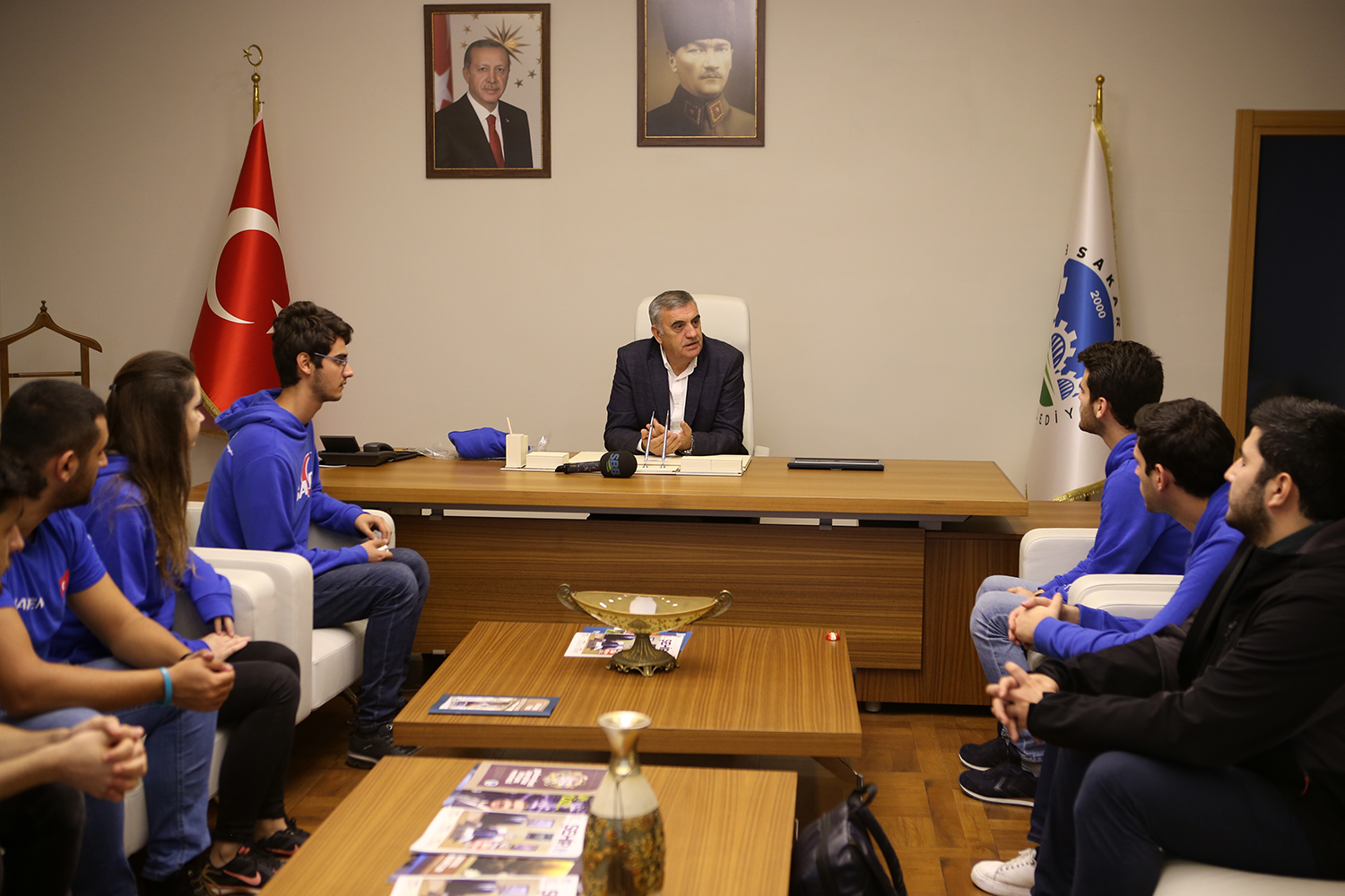 Sakarya Büyükşehir Belediye Başkanı Zeki Toçoğlu, SAÜ saİtem öğrenci kulübü ile bir araya geldi. AKOM’da gerçekleştirilen toplantıya SAİTEM Kulüp Başkanı Mert Yavuz ve yönetim ekibi yer aldı. Yavuz, Başkan Toçoğlu’na kulüplerine sunmuş olduğu destekten dolayı teşekkür ederek elektrikli araç Evrim’in fotoğrafını hediye etti. Desteğimiz sürecekBaşkan Toçoğlu, “Elektrikli Araç Projesi Evrim ile ulusal ve uluslararası pek çok yarışmada ödül almaya hak kazanan SAÜ’lü öğencilerimizi gönülden kutluyorum. Teknolojik kalkınma ülkemiz için oldukça önemli. Üniversite yılları öğrencilerin kendilerini yetiştirmeleri için büyük bir fırsat. Bu fırsatı genç arkadaşlarımız iyi değerlendirmeli. Sistemli ve düzenli çalışmalı. Genç mühendis adaylarımızdan oluşan SAİTEM’e olan desteğimiz devam edecek. Büyükşehir Belediyesi olarak genç yeteneklere ve eğitime desteğimizi sürdüreceğiz” dedi.