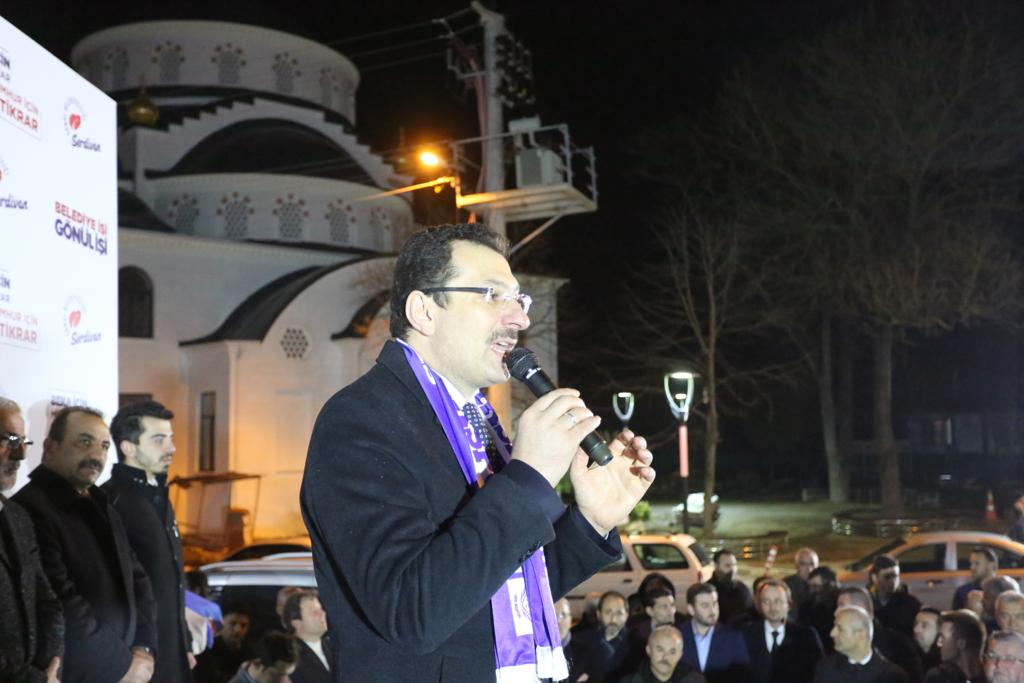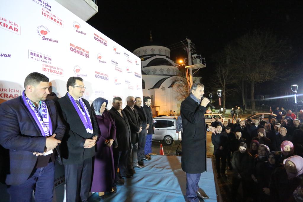 Vatandaşların yoğun ilgi gösterdiği programda Serdivan Belediye Başkanı Yusuf Alemdar, AK Parti Serdivan İlçe Başkanı Burak Erken, Kadın Kolları Başkanı Şehime Kaya, Gençlik Kolları Başkanı Yusuf Haldızoğlu ve belediye meclis üyesi adayları da hazır bulundu.İstikrar Devam EtsinSerdivan Belediye Başkanı Yusuf Alemdar’ın 10 yıldır belediye başkanlığı görevini layıkıyla yerine getirdiğini belirten AK Parti Serdivan İlçe Başkanı Burak Erken, “Yusuf Başkanımız Serdivan’da takdire şayan işlere imza attı. Bu başarılarına önümüzdeki dönem yenilerini ekleyeceğinden hiç şüphemiz yok. Biz diyoruz ki; istikrar sürsün. Serdivanımız’da çok daha güzel işler yapmaya devam edelim.” dedi.Alnımız AkHavanın soğuk olmasına rağmen programa gösterilen teveccühten dolayı vatandaşlara teşekkür ederek konuşmasına başlayan Serdivan Belediye Başkanı Yusuf Alemdar, “10 yıldır sizlerle beraberiz. 10 sene önce buraya ilk geldiğimde sizlere sadece yapabilecek olduklarımın sözünü verdim. Sizler bize inandınız, güvendiniz, destek verdiniz. Bizde vermiş olduğumuz sözleri tutanın gayretini ortaya koyduk. Hamdolsun alnımız ak, başımız dik bir şekilde bugün yine sizlerle birlikteyiz.” diye konuştu.Kazımpaşa Yolu AsfaltlanacakDoğalgaz dağıtım hattını Kazımpaşa’ya kadar ulaştırdıklarının altını çizen Alemdar, “Doğalgaz sorunun çözdük, şimdi bir adım daha ileriye gidiyoruz. Kazımpaşa yolumuzda altyapı çalışmalarımız tamamlanmadığı için kapsamlı bir asfalt çalışması gerçekleştiremiyoruz. Büyükşehir belediyemizle projemizi tamamladık. İhale sürecini bekliyoruz. Kazımpaşa yolunun altyapı çalışmaları tamamlandığı gibi biz de sıcak asfaltımızı dökerek, güzergahı hem daha kullanışlı, hem de estetik bir hale getireceğiz.” dedi.Çiftçimize Destek OlacağızÇiftçilik ve hayvancılıkla geçimini sağlayan bölge halkı için de bir çalışma yaptıklarını belirten Alemdar, “Hem milletvekillerimizle hem de büyükşehir belediye başkanımızla görüşerek dedik ki artık çiftçimize destek vereceğiz. Şu anda arkadaşlarımız bununla ilgili çalışmaları sürdürüyorlar. Sadece mahallelerde yaşayan hemşerilerimizin değil, üretim yapan çiftçimizin de hayvancımızın da yanında olmaya devam edeceğiz.” şeklinde konuştu.Cumhurbaşkanı’nın Serdivan Sözünü HatırlattıCumhurbaşkanı Recep Tayyip Erdoğan’ın Serdivan ne kadar güzel bir ilçe olmuş sözlerini hatırlatarak konuşmasın başlayan AK Parti Genel Başkan Yardımcısı ve Sakarya Milletvekili Ali İhsan Yavuz, Bizim bir sloganımız var; Memleket işi, gönül işi. Belediye işi, gönül işi. Bu slogan herhalde en iyi Yusuf Alemdar Başkanımıza uyar. O hem hizmetin alasını yaptı, hem bu işi yaparken yüreğini ortaya koydu. Yani gönülden yaptı. Tam da sloganla özdeşleşti. Ya da slogan sayın başkanımızla özdeşleşti.” dedi.Kazımpaşa’da Asfaltsız Yer KalmamışSakarya’nın en gözde ilçesi Serdivan olduğunu vurgulayan Genel Başkan Yardımcı Yavuz, “Kazımpaşa’da doğalgaz var ve Başkan diyor ki; köylere de götüreceğim. Yani bunun üstüne ne söylenebilir ki? Ben burada yoldan bahsetmesini isterdim. Köylere asfalt götüreceğim demesini beklerdim ama muhtemelen götürecek yer kalmamış hepsi sıcak asfaltla buluşmuş.” diye konuştu.Devletin BekasıCumhur İttifakı’nın devletin bekası için kurulduğuna da değinen Ali İhsan Yavuz, “Öteki tarafta da PKK ile arasına mesafe koymamış, PKK’ya terör örgütü dememiş bir partiyle kol kola yürüyen bir ittifak anlayışı var. İşte onun için adamakıllı bir ders vermemiz gerekiyor.” dedi.AK Parti Genel Başkan Yardımcısı Ali İhsan Yavuz ve protokol üyeleri program sonrası Kazımpaşa Birlik Spor’un lokaline misafir olarak, hatıra fotoğrafı çekildiler.