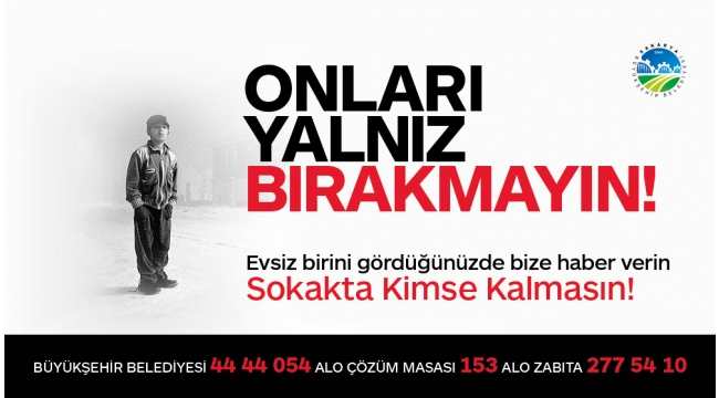 Sakarya Büyükşehir Belediyesi Sosyal Hizmetler Dairesi Başkanlığı tarafından ‘Sokakta Kimse Kalmasın’ sloganı ile yürütülen çalışmalar devam ediyor. Havaların soğuması ile birlikte sokakta kalan kimsesiz ve ihtiyaç sahiplerine karşı yürütülen çalışmaların hız kesmeden sürdürüldüğünü açıklayan Sosyal Hizmetler Dairesi Başkanı Davut Yüce, Sakaryalı vatandaşları, sokakta kalan kimsesiz ve ihtiyaç sahiplerine karşı duyarlı olmaya davet etti. Duyarlılık çağrısıYüce, “Havaların soğuması ile birlikte ‘Sokakta Kimse Kalmasın’ sloganı ile başlattığımız çalışmalarda, sokakta kalan, kimsesiz ve ihtiyaç sahibi vatandaşlarımıza yardım eli uzatıyoruz. Vatandaşlarımızın sağlık, barınma ve gıda gibi birincil ihtiyaçlarını karşılıyoruz. Sakaryalı hemşehrilerimizden ise ihtiyaç sahibi, sokakta kalan kimsesizleri bizlere bildirmeleri konusunda duyarlı olmaya davet ediyoruz” ifadelerini kullandı. Gönülleri ısıtacağızYüce, “Vatandaşlarımızın destekleri bizim için önem arz etmektedir. İhtiyaç sahiplerini bizlere bildirmek isteyen vatandaşlarımız, Büyükşehir Belediyesi 444 40 54, ALO 153 Çözüm Masası ve Alo Zabıta 277 54 10 numaralarından bizlere ulaşabilirler. İhtiyaç sahibi vatandaşlarımız için 7 gün 24 saat hizmetteyiz. İnşallah bu duyarlılık ile birlikte gönülleri ısıtacak, onlara yardım eli uzatacağız” dedi.
