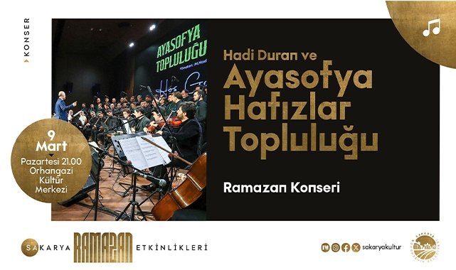 Sakarya Büyükşehir Belediyesi, Ramazan ayının manevi atmosferini kültür ve sanat etkinlikleriyle zenginleştirmeye devam ediyor.Ramazan Kültür Sanat Takvimi kapsamında düzenlenecek özel programda, tasavvuf musikisinin seçkin isimlerinden Hadi Duran ve Ayasofya Hafızlar Topluluğu Sakaryalı sanatseverlerle buluşacak.Ramazan’ın huzur dolu atmosferiyle bütünleşecek9 Mart Pazartesi günü Orhangazi Kültür Merkezi’nde düzenlenecek program saat 21.00’da başlayacak. Tasavvuf musikisinin en güzel örneklerinin icra edileceği programda, ilahiler ve klasik eserler Ramazan’ın huzur dolu atmosferiyle bütünleşecek. Sanatçı Hadi Duran yönetimindeki Ayasofya Hafızlar Topluluğu, güçlü kadrosu ve etkileyici repertuvarıyla sahne alarak dinleyicilere unutulmaz bir müzik ziyafeti sunacak.