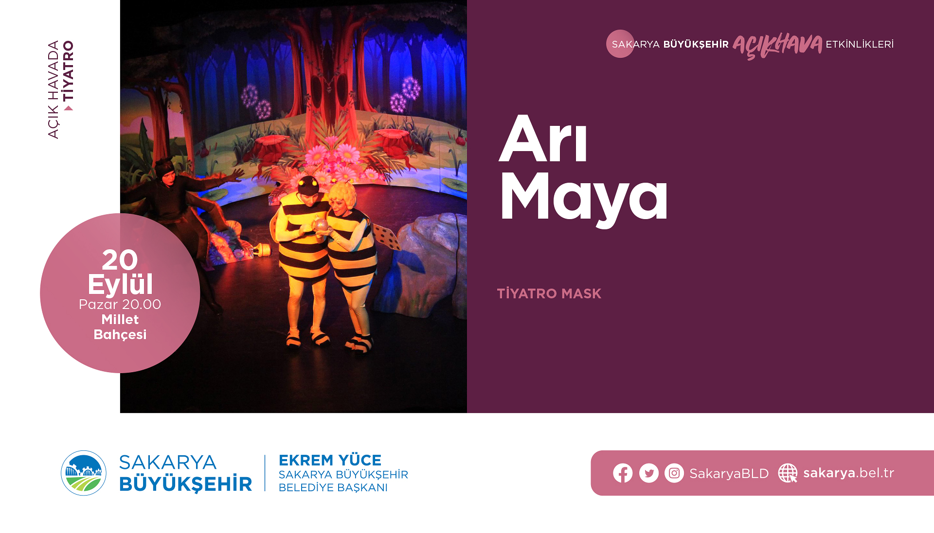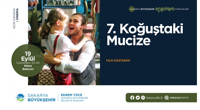 Sakarya Büyükşehir Belediyesi tarafından düzenlenen açık hava kültür sanat etkinlikleri Millet Bahçesi’nde devam ediyor. Aras Bulut İynemli’nin başrolünü oynadığı ve film otoritelerinden tam not alan 7. Koğuştaki Mucize filmi 19 Eylül Cumartesi günü saat 20.00’de vatandaşlarla buluşacak. 20 Eylül Pazar günü ise Tiyatro Mask ekibinin hazırlayıp sahnelediği ‘Arı Maya’ isimli tiyatro oyunu saat 20.00’de Millet Bahçesi’nde sahnelenecek.Maske, sosyal mesafe ve hijyen hassasiyetiKültür ve Sosyal İşler Dairesi Başkanlığı’ndan yapılan açıklamada, “Açık havada gerçekleştirilecek etkinliklerimizde uygulanacak olan maske, sosyal mesafe ve hijyen kurallarına tüm kültür sanat dostlarının hassasiyet göstermesini rica ediyoruz. Eylül ayı boyunca her hafta sonu gerçekleştirilecek olan etkinliklere tüm kültür sanat dostu vatandaşımız davetlidir” denildi.