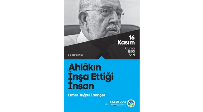 Büyükşehir Kasım Kültür Sanat Etkinlikleri 16 Kasım Cuma günü düzenlenecek etkinliklerle devam edecek. Ziya Taşkent’te gerçekleştirilecek Türk Müziği Konseri’nin yanı sıra AKM’de Ömer Tuğrul İnançer ‘Ahlakın İnşa Ettiği İnsan’ konulu konferansa katılacak.