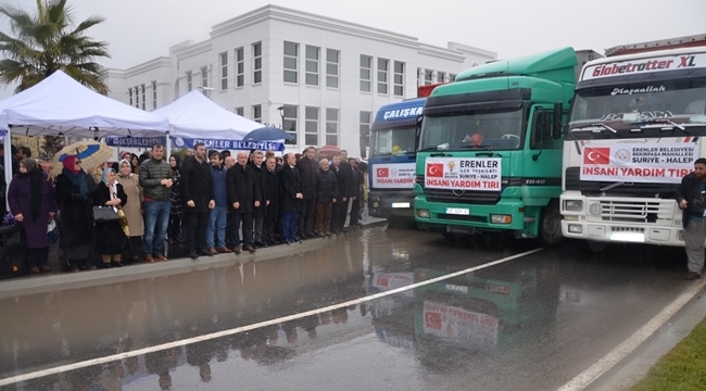 Halep'teki yoğun bombardıman ve çatışmanın ardından günlerdir aç susuz halde barınacak yer bulamayan halk için erenler Belediyesi ve çok sayıda sivil toplum kuruluşunun başlattığı yardım kampanyası sonucu toplanan insani yardım malzemeleri Halep'e gönderiliyor. Sakarya’nın Erenler İlçesinden hareket eden 5 tır dolusu malzeme Belediyenin önünde düzenlenen törenle tekbirlerle ve dualarla uğurlandı.Erenler Belediye Başkanı Cavit Öztürk tırları uğurlamadan önce yapmış olduğu açıklamada; “Uzun yıllardır özellikle son zamanlarda Irak’ta başlayan ve tüm Ortadoğu coğrafyasına yayılan zalimlerin işbirliği ile bir zulüm oluşturulmakta. İslam Coğrafyasının tümünde bir yangın var. Ayakta kalan tek Ülke Türkiye. Türk halkı diğer milletlere benzemez. Bunu da en güzel 15 Temmuz’da gösterdi. Değerli halkımız ve hayırseverlerin katkıları ile bir un kampanyası yapmıştık. Bu gün itibari ile bu kampanyayı sonuçlandırıyoruz. Bundan sonraki süreçte başlattığımız kampanya da ise her türlü gıda ve giyim eşyaları ile battaniye gönderme çalışmalarını başlattık. Duyarlı olan ve destek olan halkımıza sonsuz teşekkür ediyorum” dedi.İHH sakarya Temsilcisi Sebahattin Aydın İse yaptığı konuşmada; “Necip Milletimizin bu yardımları sadece Suriye ile sınırlı değil. Tüm Dünya’nın çeşitli ülkelerinde Türk halkının bu yardımlarını bir şekilde ulaştırıyoruz. halep bir aydır işgal altında. Geçen hafta Halep’e yol açın konvoyu Türkiye’nin 81 ilinden hareket etti. İçerde 2 mahallede bizim tespitlerimize göre 90 bin civarında insan var. Sağlanan ateşkes ile birlikte 20 bin kişi tahliye edildi. Bu milletin içindeki yardımseverlik duygusu çok ciddi manada yoğun. Çalışmamıza destek olan tüm halkımıza il ve ilçe teşkilatlarımıza ve bu yolda emek sarf eden kardeşlerimizden Allah razı olsun. Bu güne kadar Sakarya’dan halkımızın katkıları ile gönderdiğimiz tır sayısı yarın itibari ile 34 oluyor. Hedefimiz en kısa sürede 60’a tamamlamak. Hepinizden Allah razı olsun” dedi.