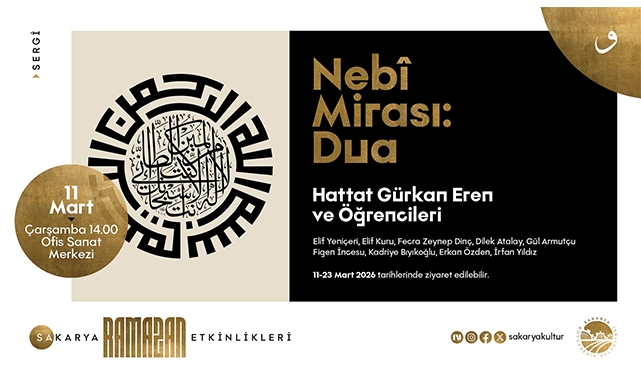 Sakarya Büyükşehir Belediyesi tarafından Ramazan ayına özel hazırlanan kültür sanat takvimi, ‘Nebi Mirası: Dua’ isimli hat sergisini Ofis Sanat Merkezi’nde (OSM) kültür sanat dostlarına açacak. Sergide geleneksel hat sanatının zarif örnekleri ve dua temalı eserler yer alacak.Hattat Gürkan Eren ve öğrencilerinin hazırladığı sergide, hat sanatının estetik ve manevi yönünü yansıtan çalışmalar sanatseverlerin beğenisine sunulacak. Sergi 11-23 Mart tarihleri arasında ziyarete açık olacak.