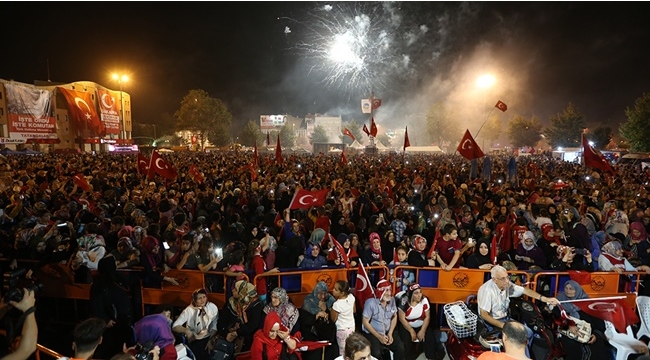 Demokrasi Meydanı’nda düzenlenen mitinge katılan Başkan Toçoğlu, “Asıl finali Cumartesi akşamı yapacağız. Bu meydanlar bizi almamalı. Hedefimiz 100 bin kişiyle büyük bir miting yapmak” ifadelerini kullanırken; Sanatçı Uğur Işılak, “Türkiye bu destanı yazdı; Avrupa, Amerika bu destanı okusun! 15 Temmuz bizim direniş ve uyanışımızın tarihidir” dedi.