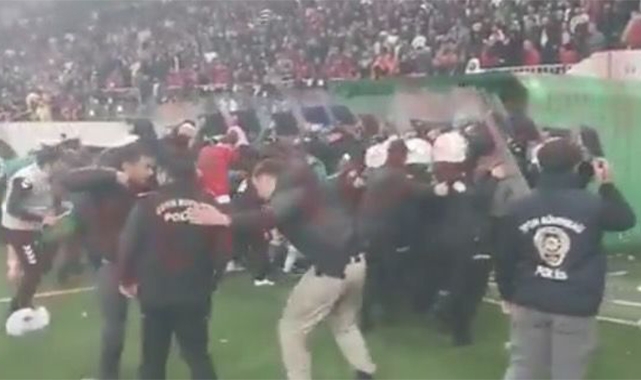 MAÇ BİTTİ, ORTALIK KARIŞTITFF 1. Lig’in 25’inci haftasında Diyarbakır’da gerçekleşen Sakaryaspor – Amedspor karşılaşması sırasında Sakaryasporlu yöneticilerin olduğu alana girmek isteyen bir grup Amedspor taraftarı, buradaki yöneticilere saldırmak istedi. Polis ekiplerince olayın büyümesi önlenirken 1-1 biten maçın ardından taraftarlar stadın içerisine yabancı madde atmaya başladı. Tribünlerden sahaya inmeye çalışan Amedspor taraftarına polis ekipleri engel olmaya çalışırken saha içerisinde kalan oyuncular ise Çevik Kuvvet ekiplerince alınan güvenlik önlemiyle soyunma odasına kadar gidebildi.KENDİ TESİSLERİNİ DE BASTILAR!Öte yandan bazı Amedspor taraftarları maçın ardından tesisleri basarak Teknik Direktör Sinan Kaloğlu ve futbolculara saldırı düzenledi. Darp edilen teknik ekip ve futbolcuları polis ekipleri güçlükle saldırganları bölgeden uzaklaştırırken teknik ekip sabah saatlerinde görevinden istifa ettiğini açıklayarak Diyarbakır’dan ayrıldı.SESSİZLİK BOZULMADI!Daha önce de Sakaryaspor futbolcularına saldıran Amedspor taraftarlarının bu tutumu sonrasında sessizliğini bozmayan isimler, yaşanan son olaylardan sonra da sessizliklerini korudu. Sakarya Atatürk Stadyumu’nda oynanan maçta yüzlerine Yeşil kod adıyla bilinen Mahmut Yıldırım’ın maskesini takan Sakaryaspor taraftarlarına karşı sert tepki gösteren siyasetçilerin Amedspor taraftarlarının saldırılarını görmezden gelmesi dikkatlerden kaçmadı. Öte yandan maçı takip etmek için Diyarbakır’da olan Sakaryalı bir basın mensubunun da saldırıya ve tehdide maruz kaldığı ortaya çıkarken birkaç siyasetçi dışında kimsenin olayla ilgili açıklama yapmaması dikkat çekti.