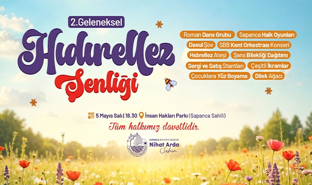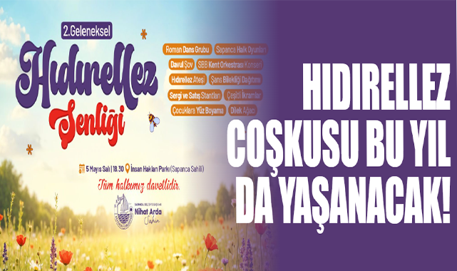 Baharın gelişiyle birlikte doğanın uyanışını, bereketi ve umudu simgeleyen 2. Geleneksel Hıdırellez Şenliği, 5 Mayıs Salı günü saat 19.00’da Sapanca Belediyesi İnsan Hakları Parkı’nda gerçekleştirilecek. Geçtiğimiz yıl yoğun katılımla gerçekleşen şenliğin bu yıl da renkli görüntülere sahne olması bekleniyor. Etkinlikte Hıdırellez’e özgü gelenekler yaşatılacak; vatandaşlar dileklerini dileyip dilek ağaçlarına asacak, ateşler yakılacak.Program kapsamında Roman dans grubu gösterileri, Sapanca halk oyunları ekibi performansı, davul şov ve SBB Kent Orkestrası konseri yer alacak. Ayrıca etkinlik alanında şans bilekliği dağıtımı, sergi ve satış stantları kurulacak ve katılımcılara çeşitli ikramlar sunulacak.Ailelerin çocuklarıyla birlikte katılabileceği şenlikte, çocuklara özel yüz boyama ile şenlik renklenecek. Katılımcılar Hıdırellez ateşi etrafında toplanarak bu özel gecenin coşkusunu birlikte yaşayacak. Sapanca Belediyesi’nin ev sahipliğinde düzenlenecek şenlikte, ilçe halkı bir araya gelerek baharın gelişini kutlayacak.