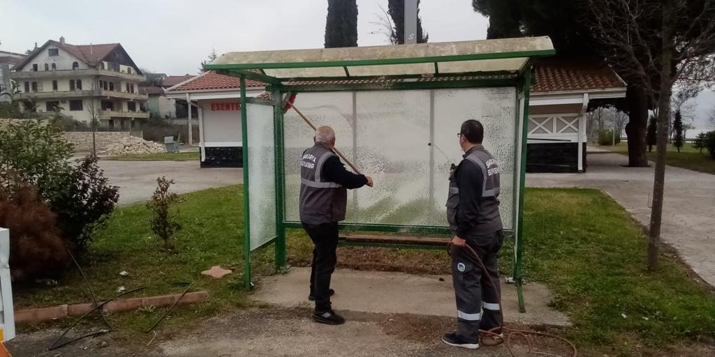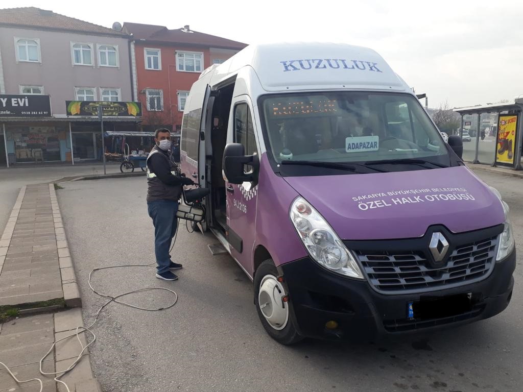 Sakarya büyükşehir belediyesi Koronavirüsle mücadele kapsamında durakları ve toplu taşıma araçlarını dezenfekte etmeye devam ediyor. Hafta içi rutin çalışma programı ve sokağa çıkma kısıtlamasının olduğu günlerde Ulaşım Dairesi Başkanlığına bağlı ekipler, yolcu yoğunluğunun yaşandığı 854 durağı hijyen standartlarına uygun hale getirildi. Ayrıca ekipler Koronavirüs salgınının başladığı ilk günlerden beri titizlikle yürüttüğü toplu taşıma araçlarının dezenfekte çalışmaları kapsamında bu hafta 782 toplu taşıma aracını temizleyerek vatandaşların hizmetine sundu. Ulaşım Dairesinden yapılan açıklamaya göre ortak kullanım alanı olan durakları ve toplu taşıma araçlarının dezenfekte çalışmalarının devam edileceği ifade edildi.