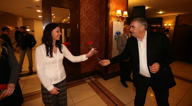 Sakarya Büyükşehir Belediye Başkanı Zeki Toçoğlu, Büyükşehir Tıp Merkezi’nde görevli doktor ve personellerle bir araya geldi. Tunatan Tesisleri’nde gerçekleştirilen buluşmada Başkan Toçoğlu’nun eşi Gönül Toçoğlu, Genel Sekreter Yardımcısı Zafer Poyraz, Sağlık İşleri Dairesi Başkanı Uzm. Dr. Aydın Sarı, doktorlar, hastane personeli ve aileleri yer aldı. Daha iyi olacağızProgramın açılış konuşmasını yapan Sağlık İşleri Dairesi Başkanı Uzm. Dr. Aydın Sarı, “Sağlık grubu olarak hep birlikte ekip çalışması yaparak hizmetlerimizi sürdürmekteyiz. Burada bulunduğum süre içerisinde sizlerde hizmet aşkını gördüm. Bundan sonra da aynı şekilde birlik beraberlik ve ekip çalışmasının devam edeceğine inanıyorum. Her yıl hedefleri yükselterek, daha üzerine koyarak, daha üste nasıl çıkabiliriz onun uğraşı ve gayreti içinde olacağız. İyi bir çizgideyiz. Bundan sonra da daha iyi olmanın yollarını arayacağız. Bu anlamda bizlerden desteklerini hiçbir zaman esirgemeyen Büyükşehir Belediye Başkanımız Sayın Zeki Toçoğlu’na şahsım ve personelim adına teşekkür ediyorum” diye konuştu. Sağlık ve mezarlık hizmetinde memnuniyet yüksekBaşkan Toçoğlu, “Öncelikle 14 Mart Tıp Bayramınız kutlu olsun. Geçtiğimiz dönemlerden beri yaptırdığımız tüm anketlerde sağlık ve cenaze hizmetlerimizden yüksek bir memnuniyet söz konusu. Bu bizim için çok sevindirici ve gurur verici bir durum. Tabi çıtayı daha yükseklere çıkarmak durumundayız. Geçmişi bırakarak, önümüzdeki süreçte de belediye hizmetlerinde en güzelini nasıl yakalarız bunun mücadelesi içerisinde olacağız. Özellikle sağlık ve mezarlık hizmetinde çalışan arkadaşlarımızın bu üstün gayreti hepimiz için minnet verici bir şey. Hepinize şükranlarımı sunuyorum” ifadelerini kullandı. Hoşgörü ve güleryüzümüzü korumalıyızBaşkan Zeki Toçoğlu, “Hemşerilerimizle direk iletişim halinde olduğumuz bir alanda çalışıyorsunuz. Bu sebeple hoşgörü ve güleryüzümüzü korumalıyız. İşte verimli olmak için hem aile hayatımıza dikkat edeceğiz hem de bizden hizmet alan insanlarımıza bu anlayışla hizmet sunacağız. Cumhurbaşkanımız milletimize biz sizin hizmetkârınızız diyor. Bunu hiç unutmayacağız. İşlerimize bu şiarla dört elle sarılacağız. İnşallah bu şekilde yolumuza çok daha iyi bir şekilde devam ederiz. Rabbim hepinize çalışmalarınızda kolaylıklar versin.”