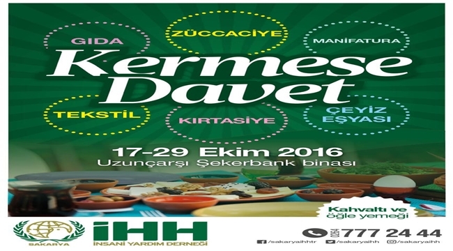 Sakarya İHH, 17-29 Ekim tarihleri arasında gıda, zücaciye, manifatura, tekstil, çeyiz ve kırtasiye malzemeleri ile kahvaltı ve öğle yemeğinden oluşan kermes günleri başlattı.