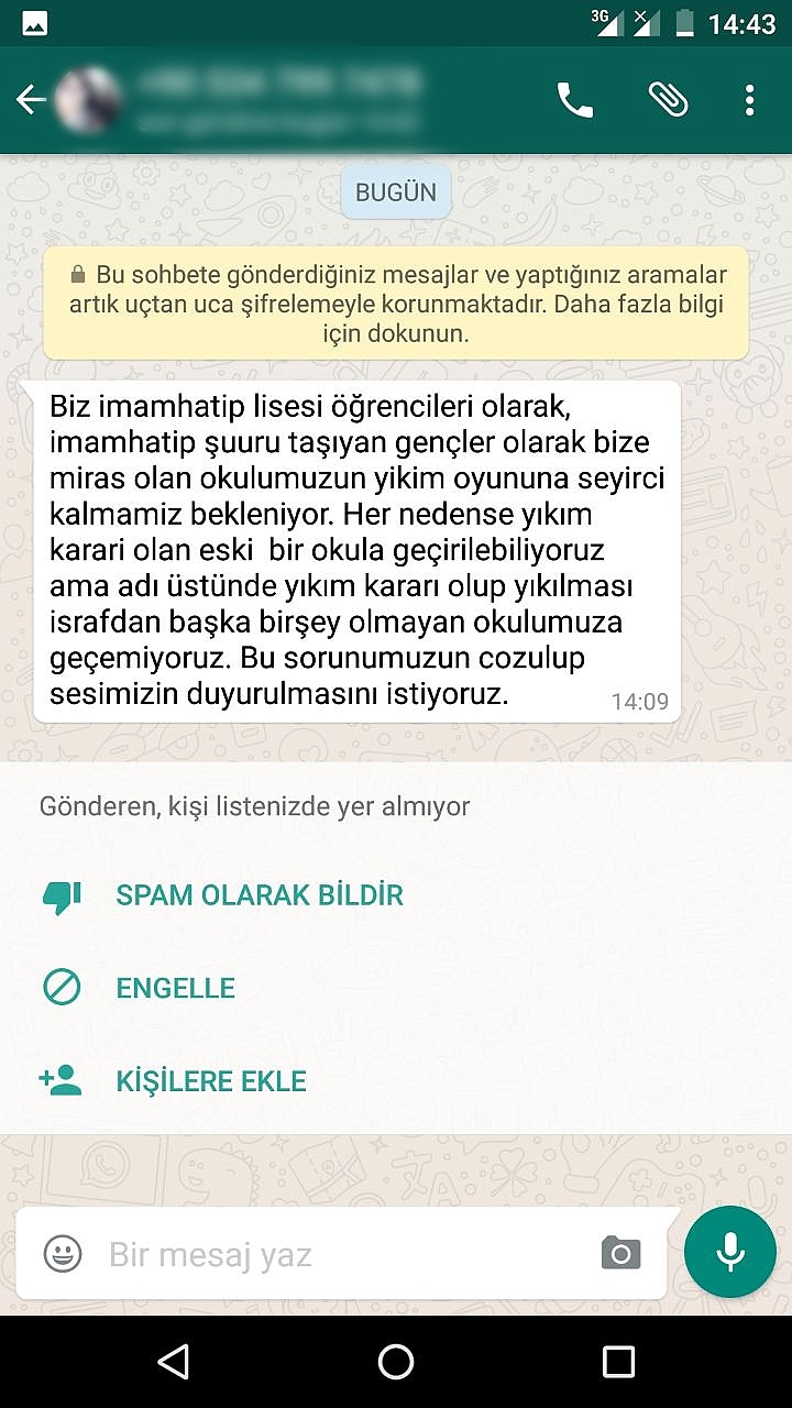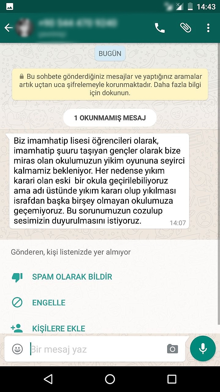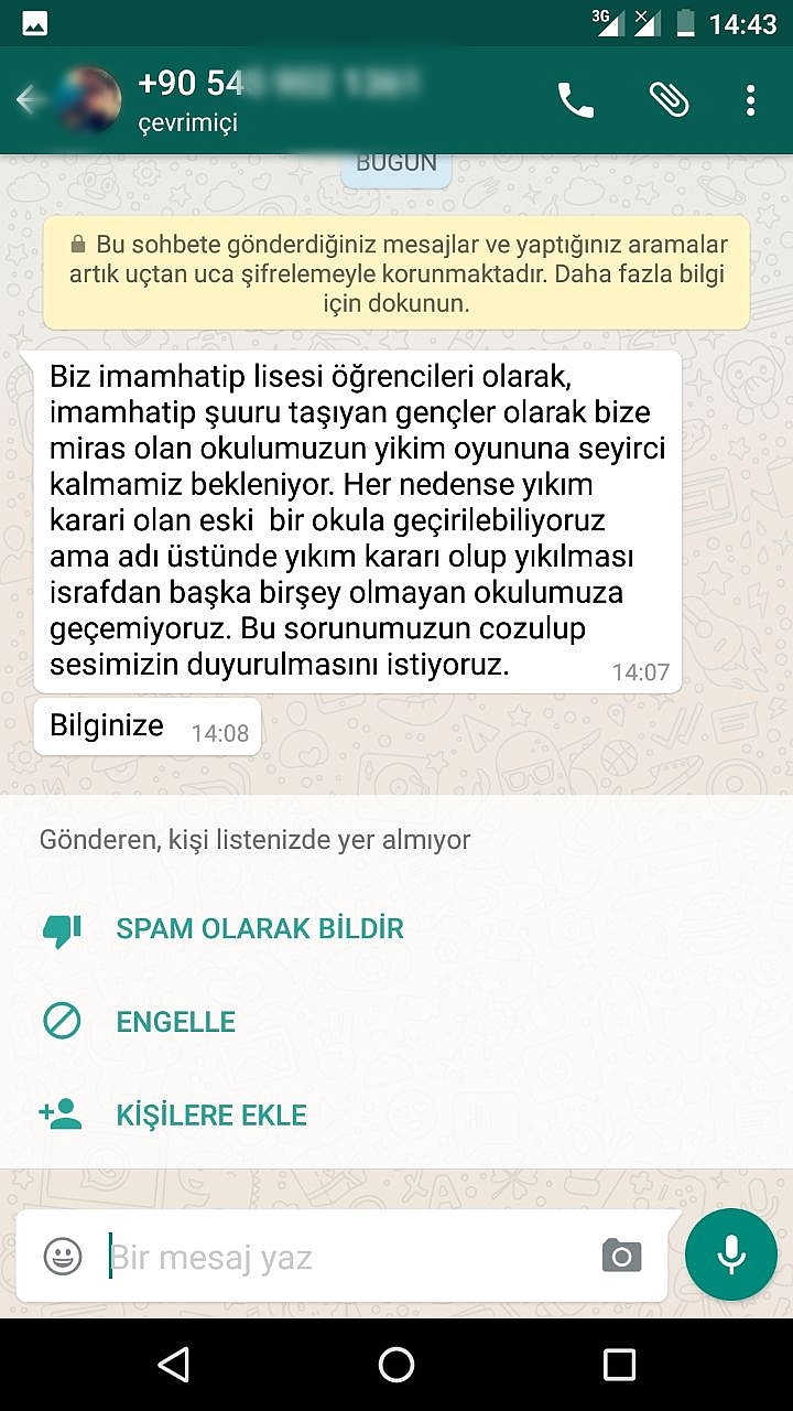 Biz imamhatip lisesi öğrencileri olarak, imamhatip şuuru taşıyan gençler olarak bize miras olan okulumuzun yikim oyununa seyirci kalmamiz bekleniyor. Her nedense yıkım karari olan eski bir okula geçirilebiliyoruz ama adı üstünde yıkım kararı olup yıkılması israfdan başka birşey olmayan okulumuza geçemiyoruz. Bu sorunumuzun cozulup sesimizin duyurulmasını istiyoruz.