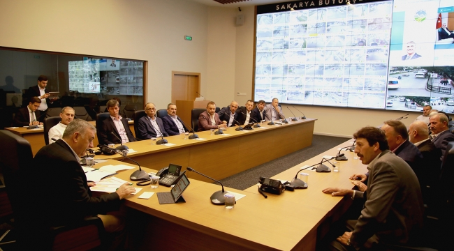 Sakarya Büyükşehir Belediye Başkanı Zeki Toçoğlu, Akyazı ve Geyve ilçesi muhtarları ile bir araya geldi. AKOM’da gerçekleştirilen toplantıda Başkan Toçoğlu’nun yanı sıra Genel Sekreter Yardımcısı Ayhan Kardan ile Yol Bakım ve Altyapı Koordinasyon Dairesi Başkanı Haydar Akbulut yer aldı.