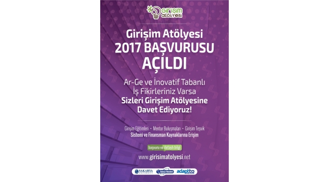 Sakarya Üniversitesi Teknoloji Transfer Ofisi (ADAPTTO) bünyesinde faaliyet gösteren Girişim Atölyesi, 2017 yılı başvurularını almaya başladı.