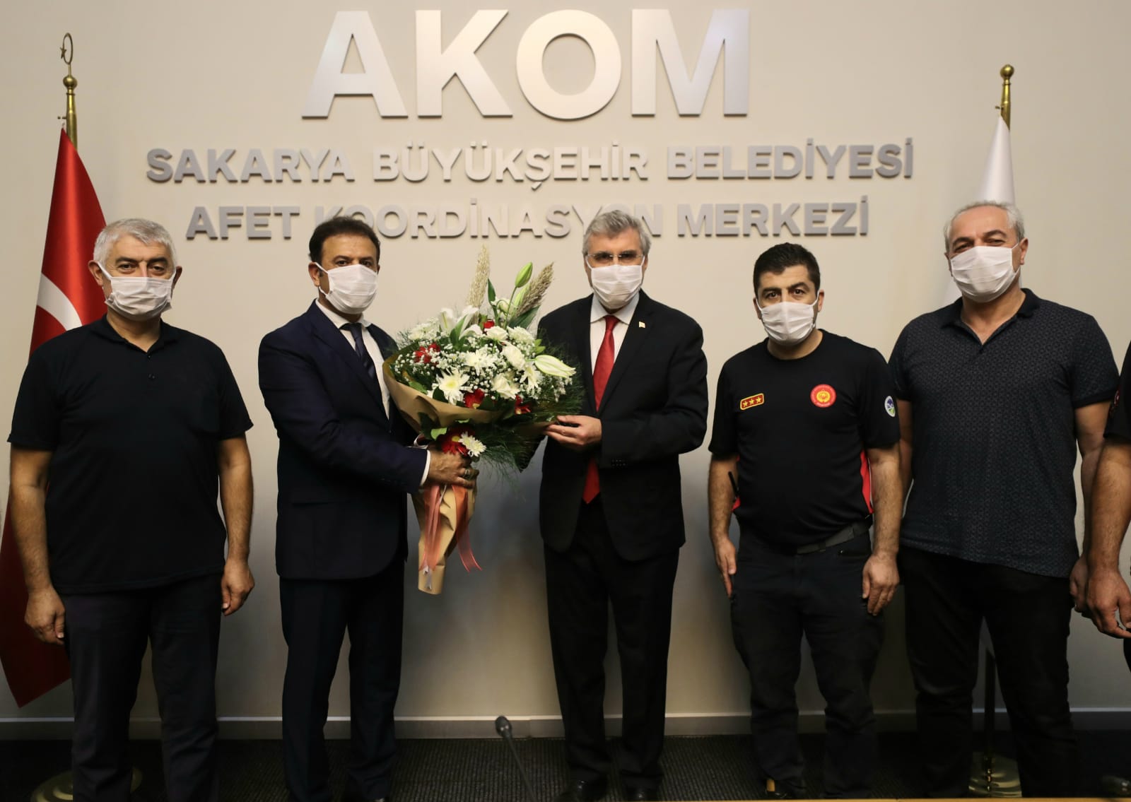 Sakarya Büyükşehir Belediye Başkanı Ekrem Yüce, 25 Eylül – 1 Ekim tarihleri arasında kutlanan İtfaiyecilik Haftası münasebetiyle İtfaiye Daire Başkanı Ayhan Orhan Arancı ve beraberindeki heyeti AKOM’da kabul etti. Afet ve yangınlara karşı özveriyle çalışan tüm itfaiye teşkilatının İtfaiyecilik Haftası’nı kutlayan Başkan Ekrem Yüce, itfaiye teşkilatının günün modern şartlarına ulaştıracak adımları kararlılıkla attıklarını vurguladı.Güçlü itfaiye teşkilatıİtfaiye Dairesi Başkanı Ayhan Orhan Arancı nezdinde tüm teşkilatın İtfaiyecilik Haftası’nı kutlayan Başkan Ekrem Yüce,