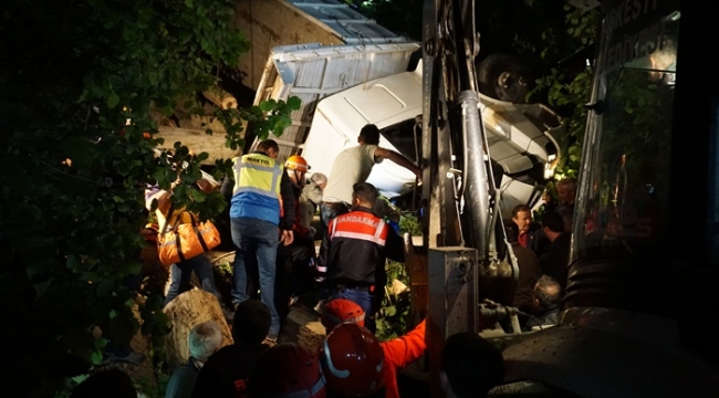 KAMYON KABİNİNDE SIKIŞAN SÜRÜCÜYÜ 4 SAAT SONRA ÇIKARABİLDİLER