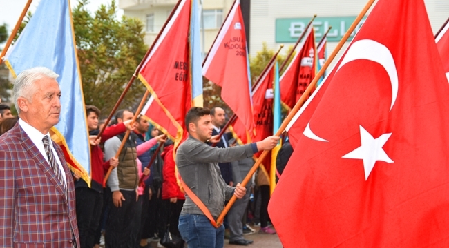 Karasu Hükümet Konağı önünde düzenlenen törende Karasu Kaymakamı Şafak Gürçam ve Karasu Belediye Başkanı Mehmet İspiroğlu, Atatürk Anıtına çelek sundular.