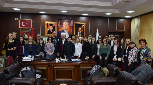KARGENÇ Kulübü’nün girişimleriyle, Avrupa Birliği Eğitim ve Gençlik Programları kapsamanda hazırlanan Kültürler El Ele isimli Erasmus+ Gençlik Değişimi projesi, Kültürel Türk el sanatlarını tanımak için Azerbaycan, Polonya, Letonya, Litvanya ve Macaristan’dan gelen 24 Öğrenci, önce karasu Belediye Başkanı Mehmet İspiroğlu’nu makamında ziyaret ettiler. Öğrenciler daha sonra, Karasu Belediyesi Karasu Gençlik Merkezi (KARGEM ) Kültürel Türk el sanatları merkezini gezdiler.Ziyaretçileri Karasu Belediyesinde ağırlayan Başkan Mehmet İspiroğlu; “KARGENÇ Kulübümüzün hazırladığı başarılı bir proje daha. Kulübümüz farklı branşlar altında başarılarla dolu projeleri hayata geçiriyorlar. El sanatlarının unutulmasını engellemek ve gelecek nesillere aktarılmasının sağlanması için hazırlanan bu projeye imkânlarımız doğrultusunda bizlerde destek olmaya çalıştık. Farklı kültürlere ait el sanatlarını tanımaları ve yapımı ile ilgili bilgi alan öğrenciler, Türk el sanatlarını da KARGEM binamızda öğrenme fırsatı buldular. Kulübümüzü, kulüp yönetimimizi ve bu amaç uğruna çaba gösteren tüm sorumluları tebrik ederim” ifadelerine yer verdi.Projeye katılan öğrenciler; “Proje sırasında pek çok tecrübe kazandık, birbirimizle sürekli iletişim halinde olduk. Birbirimizle konuşmak bile çok eğlenceli. Genel olarak projeden keyif aldık ve hepimiz eğlendiğimizi söyleyebiliriz. Burada el sanatlarını öğrenmek olsun birbirimizle iletişim kurmak olsun çok eğlenceli günler geçirdik. Proje kapsamında burada olduğumuz için elbette çok mutluyuz. Burada Türk el sanatlarını biraz olsun öğrenmeye çalıştık. Eğlenceli bir projede yer almak mutluluk verici. Birbirimizin kültürlerini öğrenmek oldukça keyifli” dediler.Karasu Belediyesi Kültür ve Sosyal İşler Müdürü Fatma Tatlı ise; “Bugün KARGEM binamızda, proje kapsamından 5 farklı Ülkeden gelerek projeleri dâhilinde çalışmalar yapan öğrencilerimizi ağırladık. Bu öğrenciler, 5 ülkeden çeşitli gruplar halinde gelerek, kendi el sanatlarını birbirlerine aktardılar ve bizim el sanatlarımızı öğrenmeye çalıştılar. Bizler Karasu Belediyesi olarak KARGEM çatısı altında kendi el sanatlarımızla ilgili tanıtımımızı yaptık ve onlarda bize kendi Ülkeleriyle ilgili tanıtımlarını yaptılar. Güzel bir dostluk kurduk ve çok güzel bir ortam oluştuğu düşüncesindeyim” dedi.Projenin genel yapısı ve hayata geçirilişi ile ilgili açıklamada bulunan KARGENÇ Kulüp Başkanı Ersel Aydın; “Projemizi başarı ile tamamlamanın mutluluğunu yaşıyoruz. Hazırladığımız projede Karasu’ya gelen öğrenciler Gazi Metal fabrikası sosyal tesislerinde ülke tanıtımlarını yaptılar, Karasu Anadolu Lisesi’nde tek kırma eğitimi ve Azerbaycan el sanatları eğitimini aldılar. Karadeniz Mesleki ve Teknik Anadolu Lisesi’nde Macaristan ve Litvanya el sanatları eğitimi ve Türk takı tasarımının genel yapısını öğrenen ziyaretçiler, Karasu Otel’de Letonya el sanatları eğitimini aldılar. Bu çalışmaları tamamlayan proje üyeleri, Karasu Belediyesi KARGEM binasında Polonya el sanatları eğitimi ve Türk deri işlemeciliği eğitimini öğrendiler. Etkinliğimizin son gününde projenin genel hatlarının aktarılması amaçlı bir sergi düzenledik. Bu sergi halkımız tarafından da yoğun ilgi ile karşılandı. KARGENÇ Kulübü olarak hazırladığımız proje kapsamında Karasu Kaymakamı Sayın Aziz Mercan, Karasu Belediye Başkanı Sayın Mehmet İspiroğlu, Karasu İlçe Milli Eğitim Müdürü Sayın Çetin Turhan’ı ziyaret etme fırsatımızda oldu. Bu ziyaretlerimiz, projemiz ve ilçemiz ile ilgili paylaşımlar, misafirlerimizin önerileri ve yapılacak çalışmalar için faydalı oldu. Şunu net olarak söyleyebilirim ki; KARGENÇ gönüllülerini ve Karasu gençlerini oldukça hareketli günler bekliyor. KARGENÇ Kulübü olarak önümüzdeki günlerde yeni faaliyetlerimizi açıklayacağız” dedi.