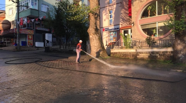 Karasu Belediyesi Temizlik İşleri Müdürlüğü ekipleri tarafından ana cadde ve ana caddelere bağlı sokaklar tazyikli su ile yıkandı.