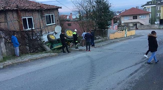Kaza, karasu ilçesi Kuzuluk Mahallesi Ulubatlı Caddesi üzerinde meydana geldi. Edinilen bilgiye göre, A.Y. idaresindeki 54 PA ... plakalı traktör, sürücüsünün direksiyon hakimiyetini kaybetmesi sonucu kontrolden çıkarak devrildi. kaza sonucu sürücü A.Y. ve traktörde bulunan B.Y. yaralandı. Kazanın haber verilmesi üzerine olay yerine sağlık ve polis ekipleri sevk edildi. Olay yerine gelen sağlık ekiplerince yaralılar Karasu İlçe Devlet Hastanesine kaldırılarak tedavi altına alındı.
