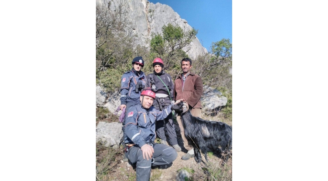 Sakarya’nın Geyve ilçesinde kayalık alanda üç gündür mahsur kalan keçi, Sakarya AFAD ekiplerince kurtarıldı.