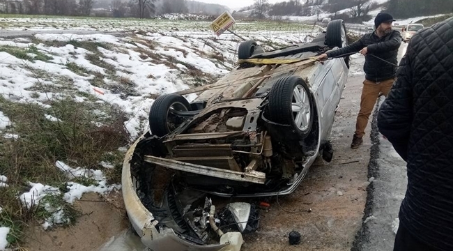 Kaygan Yolda Otomobil Takla Attı: 2 Yaralı