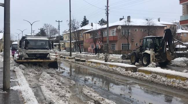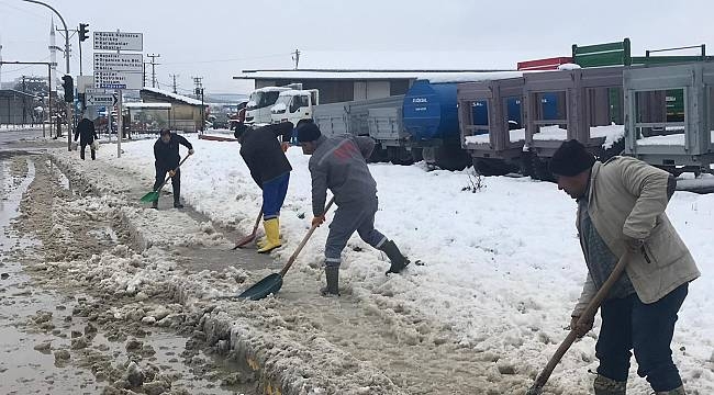 Kaynarca'da etkili olan kar yağışı nedeniyle ilçe genelinde yolları kaplayan karları belediye ekipleri temizledi.