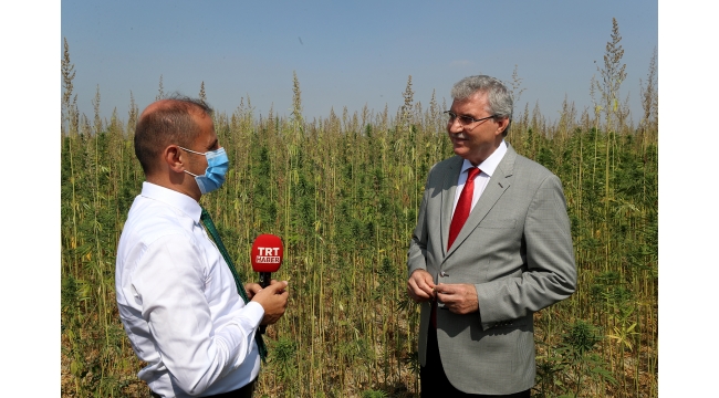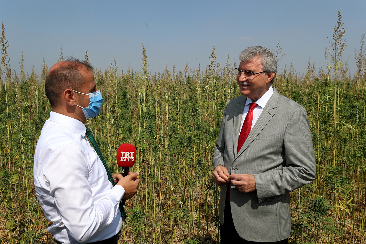 Alancuma’da kurulan 100 dekarlık alanda ekimi gerçekleştirilen endüstriyel kenevir ile ilgili TRT Haber’e özel açıklamalarda bulunan Başkan Ekrem Yüce, “Sayısız faydası olan ve bir zamanlar dünyanın en önemli üretim bitkilerinden biri olan kenevir gibi mucizevi bir bitkiyi tekrar ürettiğimiz için gurur duyuyoruz” dedi.
