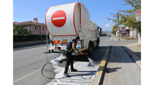 Serdivan Belediyesi hafta sonu sokağa çıkma kısıtlamalarını fırsat bilerek ilçenin her noktasında temizlik ve dezenfekte çalışması gerçekleştiriyor.