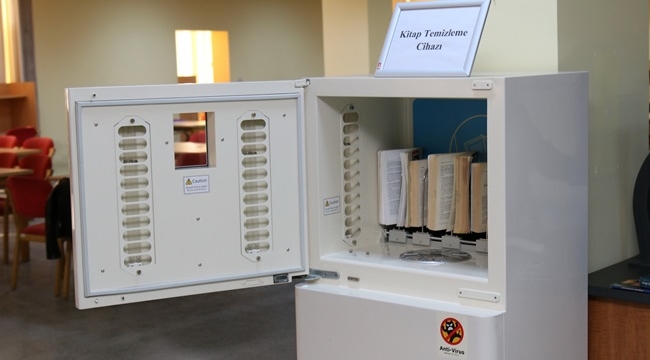 Sakarya Üniversitesi Kütüphane ve Dokümantasyon Dairesi Başkanı Mustafa Eşmeli’nin desteği ve bağışıyla temin edilen BookShower, ultraviyole ışınlar sayesinde aynı anda 5 adet kitabı 50 saniye içinde temizleyebiliyor.Kitap Temizleme Makinesinin Merkez Kütüphane kullanıcılarının hizmetine sunulduğunu belirten Mustafa Eşmeli, “BookShower üst kapak ve iç yapraklar ile birlikte tüm cildin temizliğini yapmaktadır. Ultraviyole ışınlar sayesinde,kitaplardaki mikropları da yok etmektedir. Merkez Kütüphanekullanıcıları, böylelikle, hem ödünç aldıkları kitapları evlerine temiz bir şekilde götürebilecek hem de kitabı iade ederken makineden geçirip rafta temiz durmasını sağlayabileceklerdir.Kitap Temizleme Makinesi, kullanımının kolay ve hızlı olması nedeniyle, yeni hizmete sunulmasına rağmen, yoğun olarak kullanılmaya başlandı” ifadelerini kullandı.