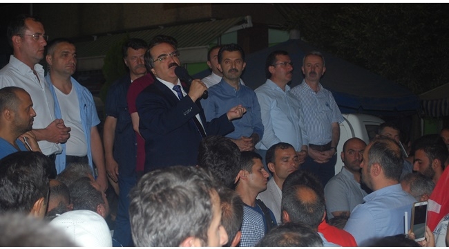 BU ZAFER TARİHE GEÇTİSESOB Başkanı Hasan Alişan, Esnaf ve Sanatkarlarımız her zaman olduğunu devletimizin ve milletimizin yanında olacaktır. Bu direniş tarihe geçmiştir dedi DEMOKRASİ NÖBETİMİZ SÜRECEKBüyükşehir Belediye Başkanı Zeki Toçoğlu, “Demokrasimiz, namusumuz, şerefimiz, insani ve İslami değerlerimiz için 12 gündür meydanlardayız. 7 den 70 kadar 12 gündür sürdürdüğünüz bu demokrasi nöbeti için tüm kocaali halkına teşekkür ediyorum dedi. Cumhurbaşkanımız Recep Tayyip Erdoğan evlerinize gidebilirsiniz diyene kadar meydanlardayız. “Bu bizim istiklal ve istikbal mücadelemizdir” diye konuştu.HAYIR DEYİP İSYAN ETTİKMitingin son konuşmasını Vali hüseyin avni coş gerçekleştirdi. Vali Coş; “Darbe Türkiye`nin güçlenmesinden korkan yabancı güçlerin tezgahladıkları bir tertiptir. Bu darbe girişimine Milletçe Hayır deyip isyan ettik. “Mücadelemizi sonuna kadar sürdüreceğiz”dedi