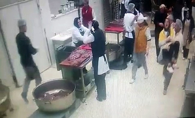 Görüntülerde, yanındaki arkadaşıyla sohbet ettiği görülen E. A.’nın bir anda sol kolunu kıyma makinasına kaptırdığı görülüyor. Yaralı kızın çığlıkları üzerine yemekhanede çalışanların büyük panik yaşadıkları, E.A.’nın kolunu kıyma makinasından kurtarması ve çalışanlardan birinin yaralı kızı kucağına alarak dışarıya çıkması yer alıyor.