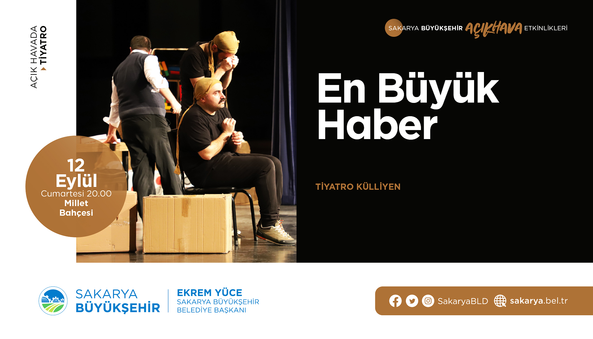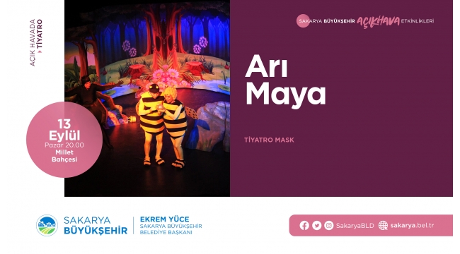 Sakarya Büyükşehir Belediyesi tarafından düzenlenen Eylül ayı Kültür Sanat Etkinlikleri Millet Bahçesinde hafta sonu gerçekleştirilecek tiyatro gösterimleri ile devam edecek.
