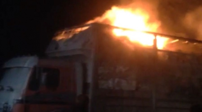 Kumaş Yüklü Kamyon Alev Alev Yandı