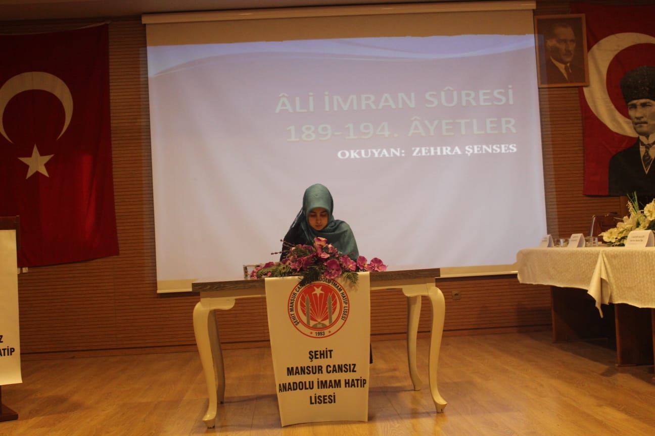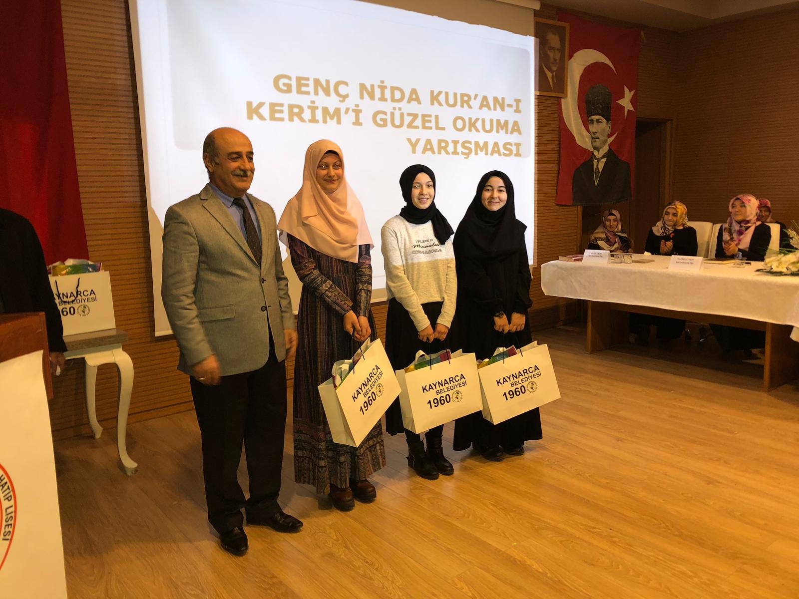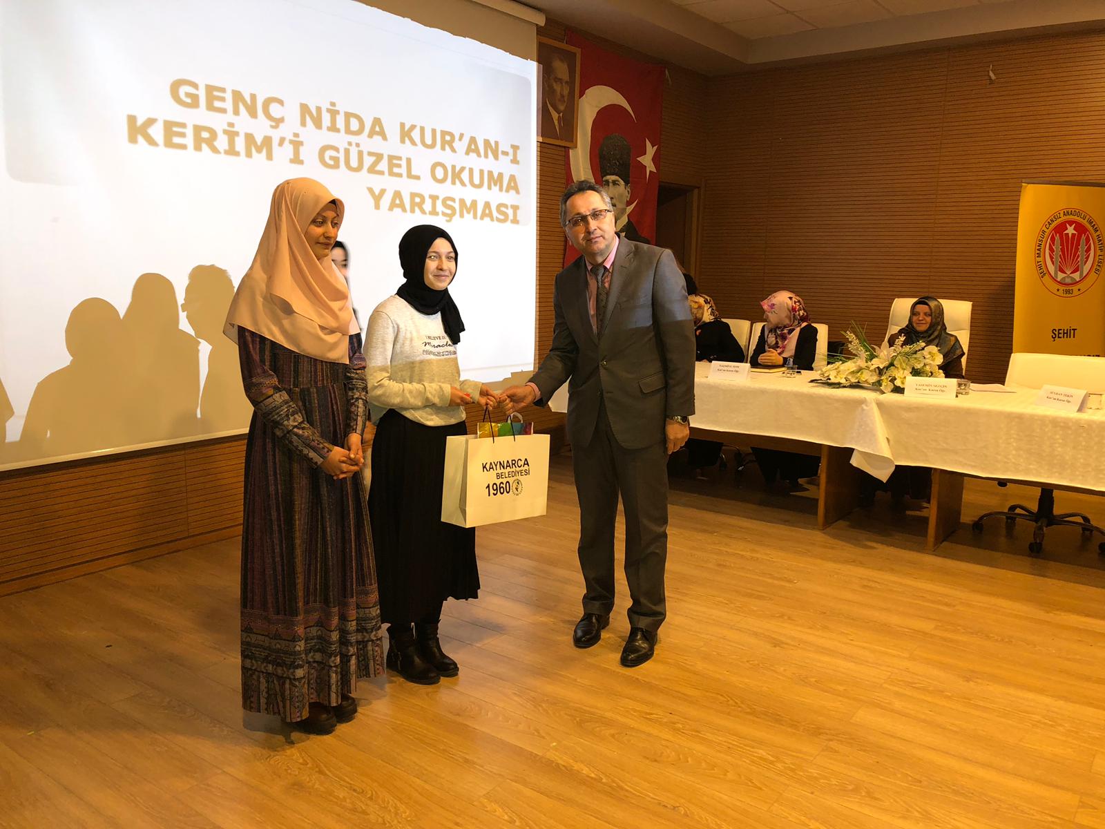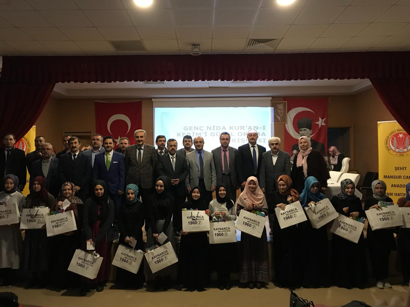 Kaynarca İlçesi Şehit Mansur Cansız Anadolu İmam Hatip Lisesi Koordinesinde, kaynarca Belediyesi Başkanlığının katkılarıyla, Kaynarca Belediyesi Kültür Merkezinde düzenlenen yarışmaya 18 Anadolu İmam Hatip Lisesinden öğrenciler katıldı. Yarışmada; Akyazı Kız Anadolu İmam Hatip Lisesi öğrencisi Melike Altıntaş Birinci, Hendek Anadolu İmam Hatip Lisesi öğrencisi Gülsüm İpek İkinci, Vali Mustafa Büyük Kız Anadolu İmam Hatip Lisesi öğrencisi Feyza Yılmaz Üçüncü oldu. Yarışmada dereceye girenlerin ödüllerini; Kaynarca Kaymakamı Mehmet Ali Karatekeli, Kaynarca İlçe Milli Eğitim Müdürü Mehmet Harbi ve İl Milli Eğitim Şube Müdürü Alican Akdoğan verdi. Ayrıca; yarışmaya katılan tüm öğrencilere ve jüri üyelerine Koordinatör Okul, Kaynarca İlçe Milli Eğitim Müdürlüğü ve Kaynarca Belediyesi Başkanlığı tarafından çeşitli hediyeler verildi.