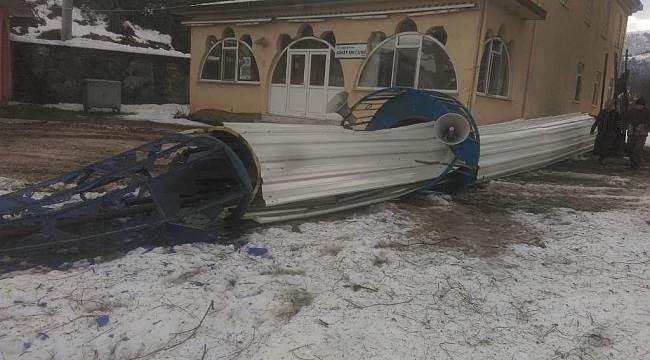 Hendek ilçesinde esen kuvvetli lodos nedeniyle cami minaresi yıkıldı.