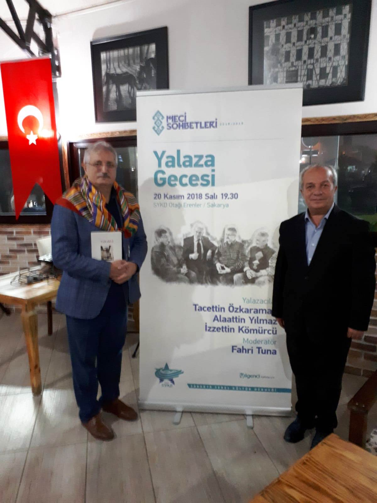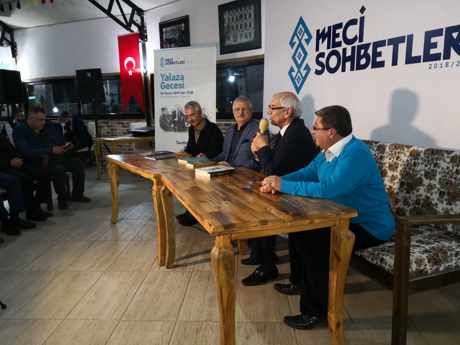 Meci Sohbetleri programının sonunda konuşmacılara Teşekkür Belgesi ve SYKD Yayımlarından hediye eden sakarya Yerel Kültür Derneği Başkanı Necmettin Kırık, “SYKD Otağımızda Meci Sohbetleri kapsamında Yalaza Gecesi gerçekleştirdik. Bu güzel sohbetin gerçekleşmesini sağlayan ve moderatörlüğünü yapan kurucu üyemiz Fahri Tuna ağabeyimize, yerel kültürümüzün bu güzel geleneğini gelecek nesillere aktarmamızı sağlayan Yalaza Gecesinin önemli misafirleri derneğimizin kurucu üyesi Taraklı Belediye Başkanımız Tacettin Özkaraman’a, yine derneğimiz üyeleri Yalaza Ustaları Alaattin Yılmaz ve İzzetin Kömürcü ağabeylerimize hoş sohbetleri için çok teşekkür ediyoruz.” dedi.