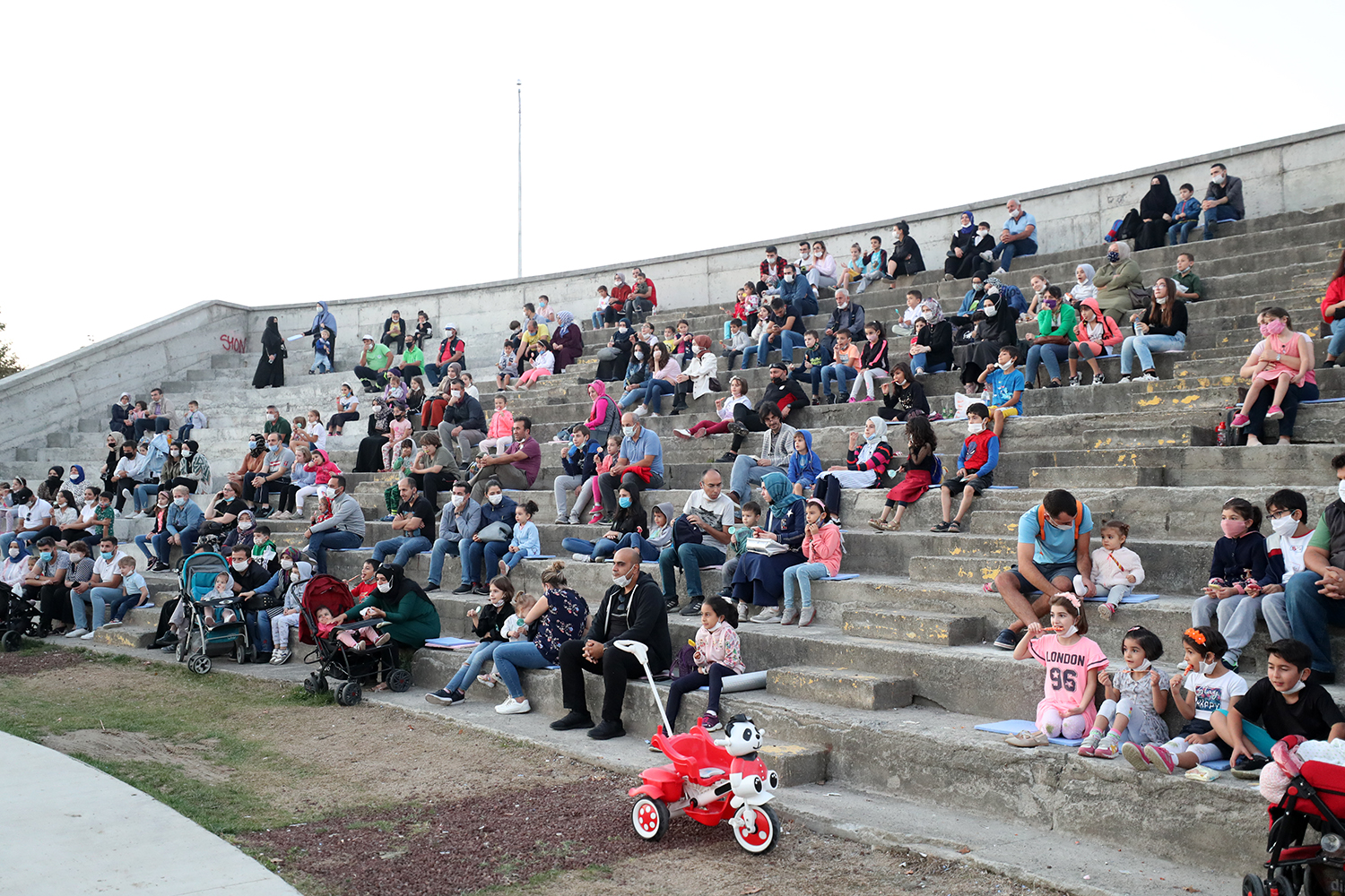 Millet Bahçesi’nde sahne bu kez yalnızca minikler için kuruldu. Sosyal mesafe, maske ve dezenfektan kurallarına karşı önlemlerin hassasiyetle uygulandığı kültür sanat açık hava etkinliklerine çok sayıda kültür sanat dostu minik sanatsever katıldı.