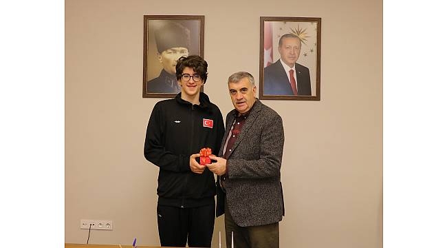 Türkiye Büyükler Açıksu rekoru kıran Milli yüzücü Batuhan Ecrin Pınar’a hediye takdim eden Başkan Toçoğlu, “Şehrimizde yetişen kardeşlerimizin milli formayla ülkemizi temsil etmesi ve başarılar elde etmesinden gurur duyduk. Türkiye Büyükler Açıksu rekoru kırarak Sakaryamıza başarıyla dönen Pınar’ı tebrik ediyor, başarılarının devamını diliyorum” dedi.