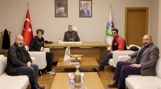Sakarya Büyükşehir Belediye Başkanı Zeki Toçoğlu, Milli yüzücü Batuhan Ecrin Pınar ile buluştu. AKOM’da gerçekleştirilen ziyarette Başkan Toçoğlu’nun yanı sıra Gençlik ve Spor Hizmetleri Dairesi Başkanı Orhan Bayraktar, Antrenör Sinan Ölüş, milli yüzücü Batuhan Ecrin Pınar ve Murat Uslu yer aldı. Başkan Toçoğlu, Gebze’de Türkiye Büyükler Açıksu Rekoru elde eden Pınar’ı tebrik ederek hediye takdim etti. Gurur vericiBaşkan Toçoğlu, “Büyükşehir Belediyesi olarak her zaman sporu önceledik. Sporcularımıza destek sunduk. İlçelerimize gençlerin rahatlıkla spor yapabileceği spor tesisleri inşa ettik. Şehrimizde yetişen sporcularımızın milli formayla ülkemizi temsil ediyor olmasından büyük mutluluk duyuyoruz” dedi. Güzel örnekToçoğlu, “Milli yüzücü Batuhan Ecrin Pınar Gebze’de Türkiye Büyükler Açıksu rekoru kırarak Sakaryamıza başarıyla döndü. Kendisini tebrik ediyor başarılarının devamını diliyoruz. Henüz 15 yaşında olan Ecrin kardeşimizin diğer sporcu arkadaşlarımıza da güzel bir örnek teşkil edeceğini düşünüyorum. İnşallah sakarya sporcu şehri olmaya davam edecek” dedi.